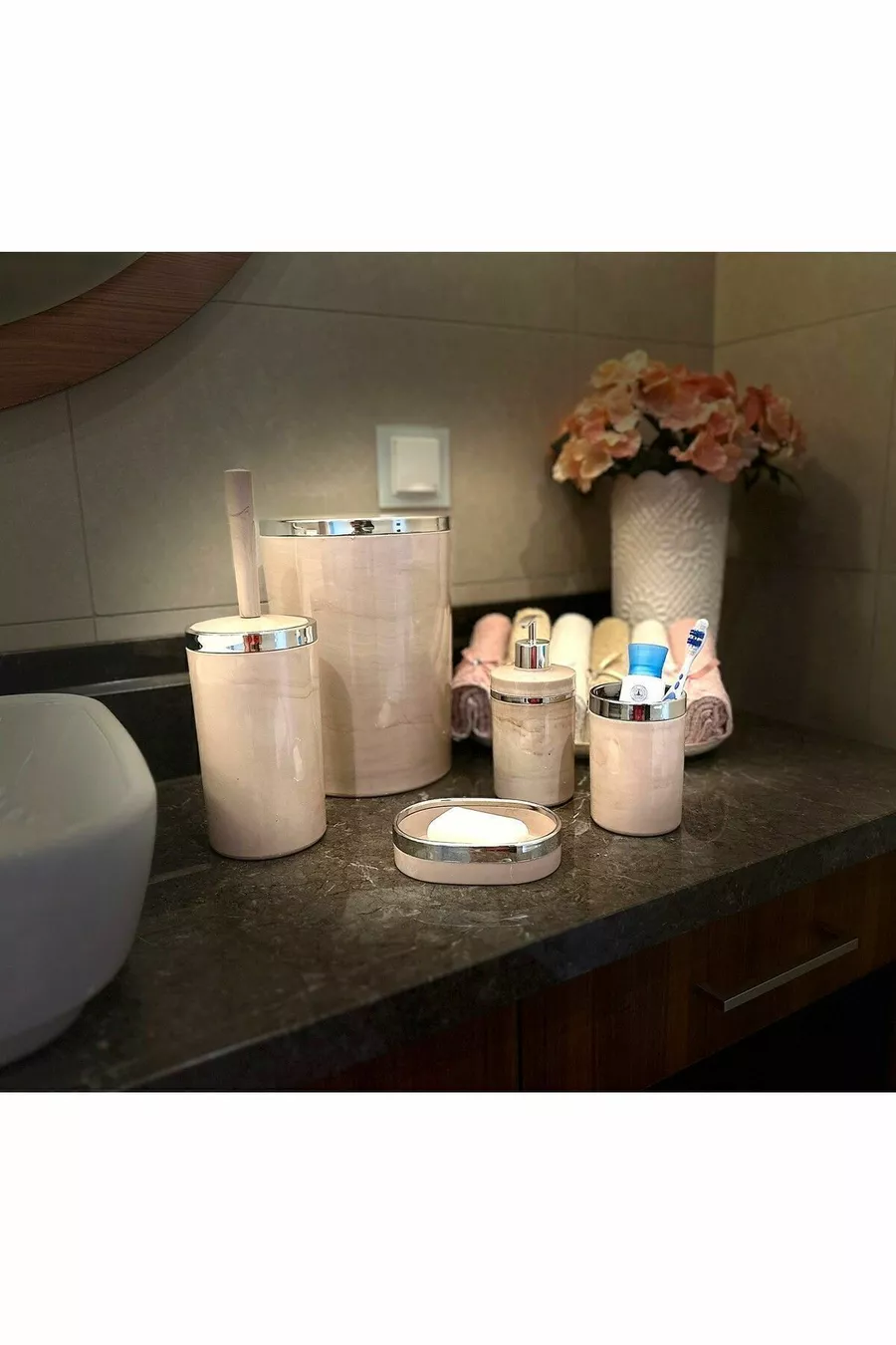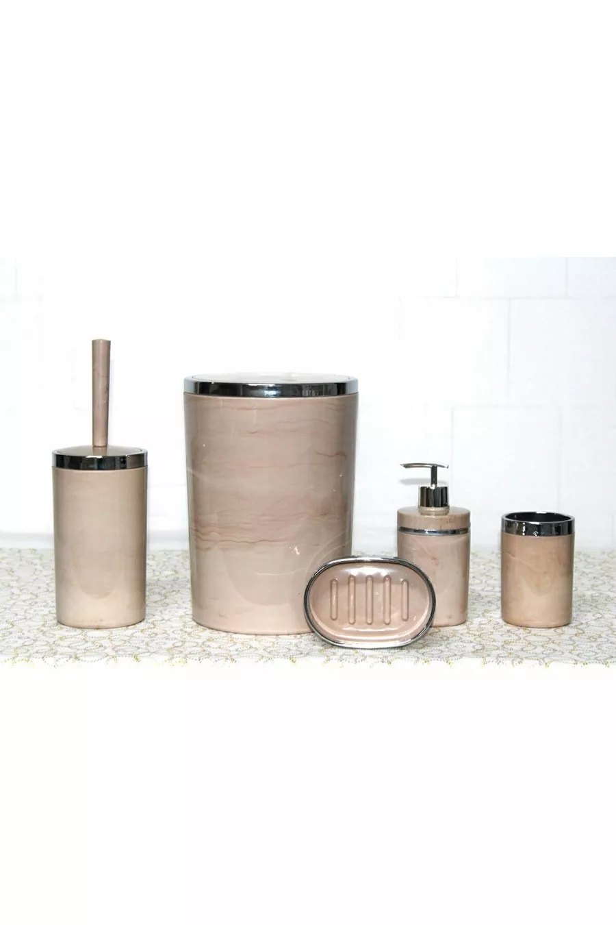 5-delige badkamer set, rond, acryl - prullenbak, WC-borstelhouder, vloeibare zeepdispenser, tandenborstelhouder, handzeepdispenser