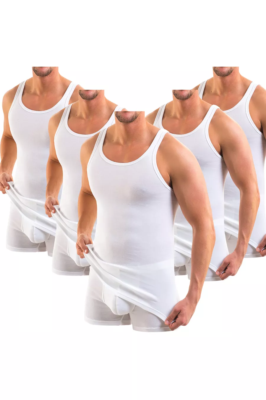 5 Stuks Premium Klassieke Heren Tanktop Alexander Extra Lang - Fijn Geribbelde Organische Katoen