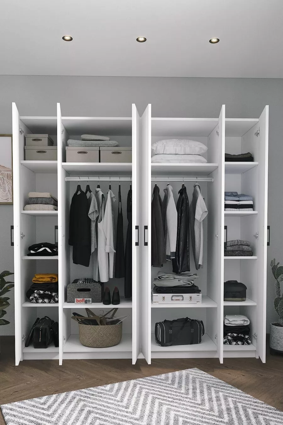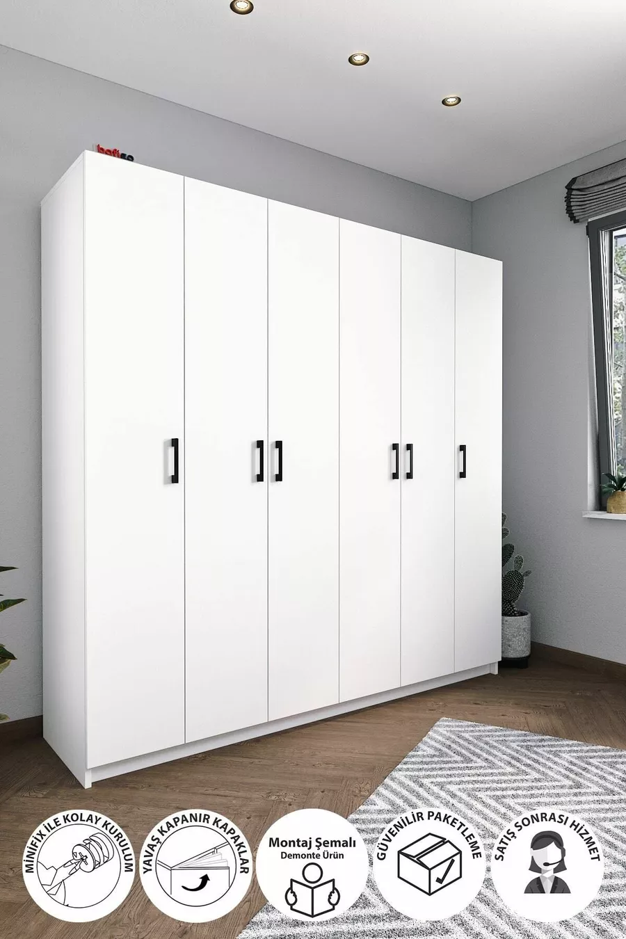 6 Kapaklı Raflı Gardırop Elbise Dolabı 6 Kapaklı Gardırop Beyaz