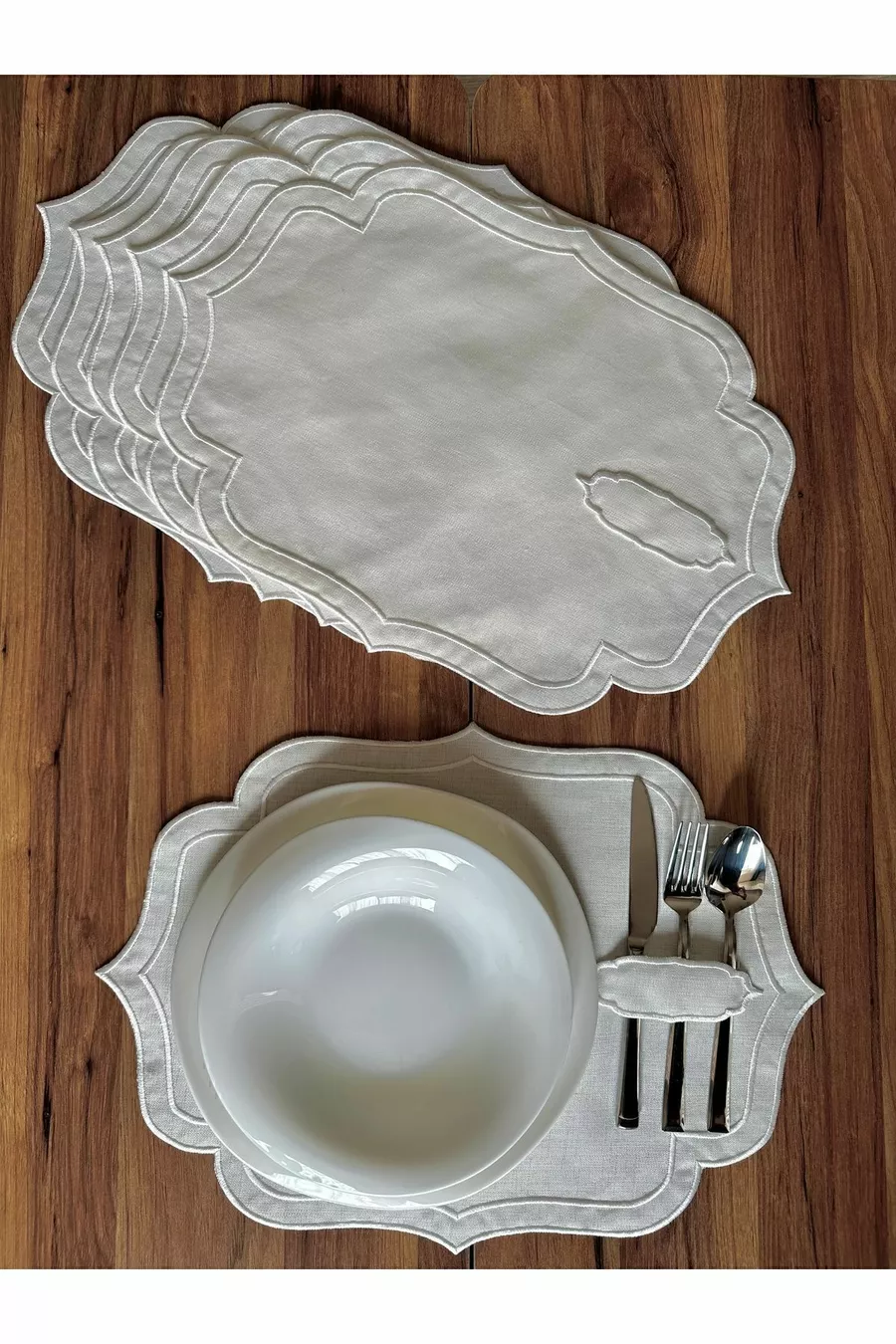 6 Stuks Dubbele Rij Ecru Borduurwerk Lepel Amerikaanse Placemat