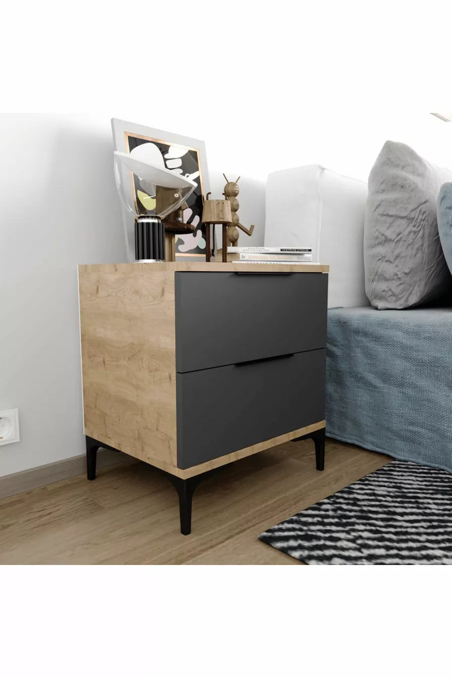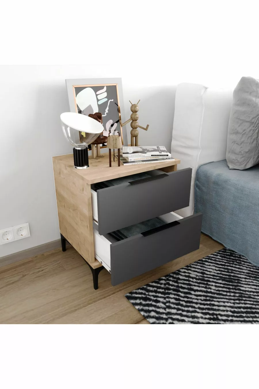 Aden 2 Lades Donkergrijs Nachtkastje, Economisch Nachtkastje, Modulair Nachtkastje
