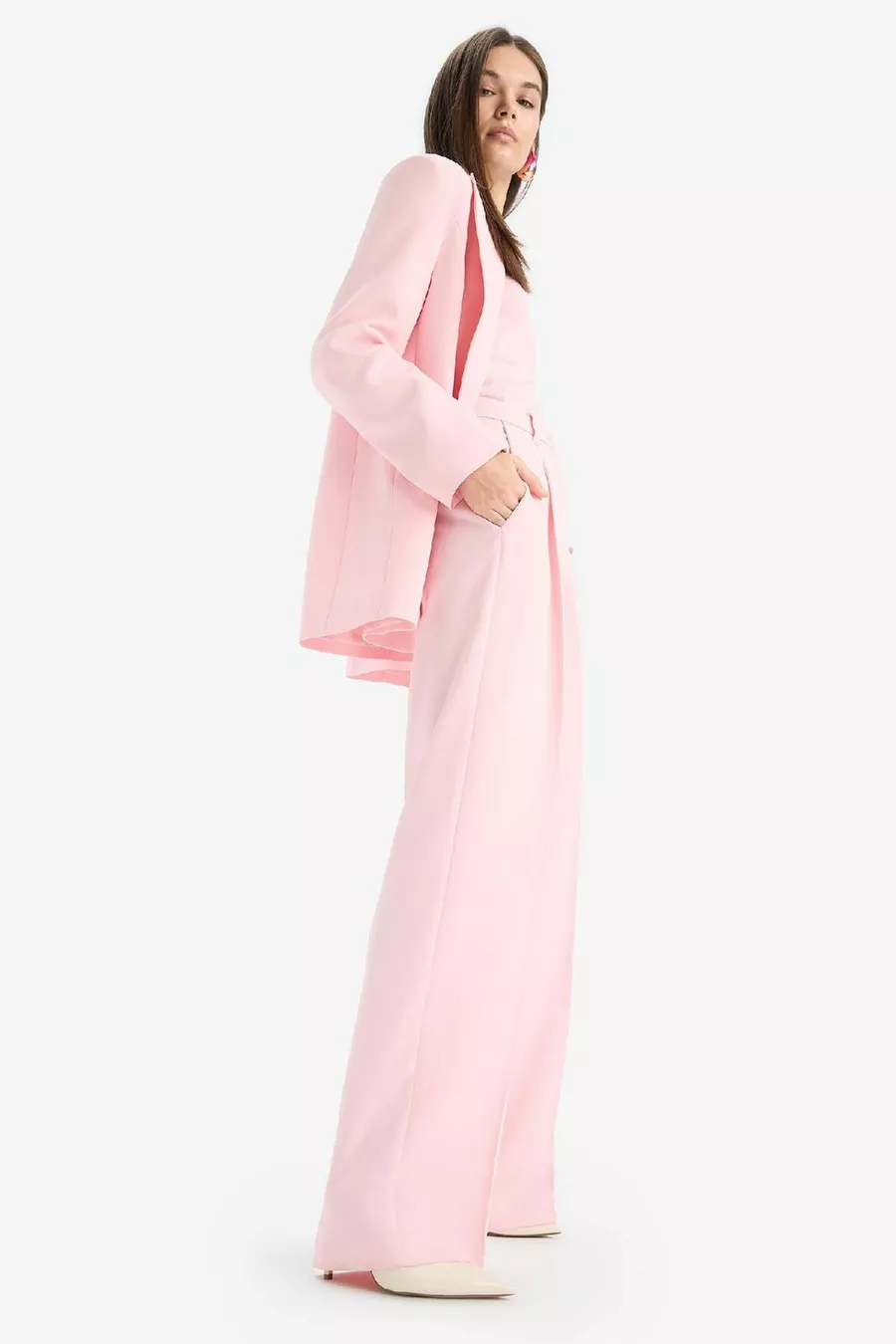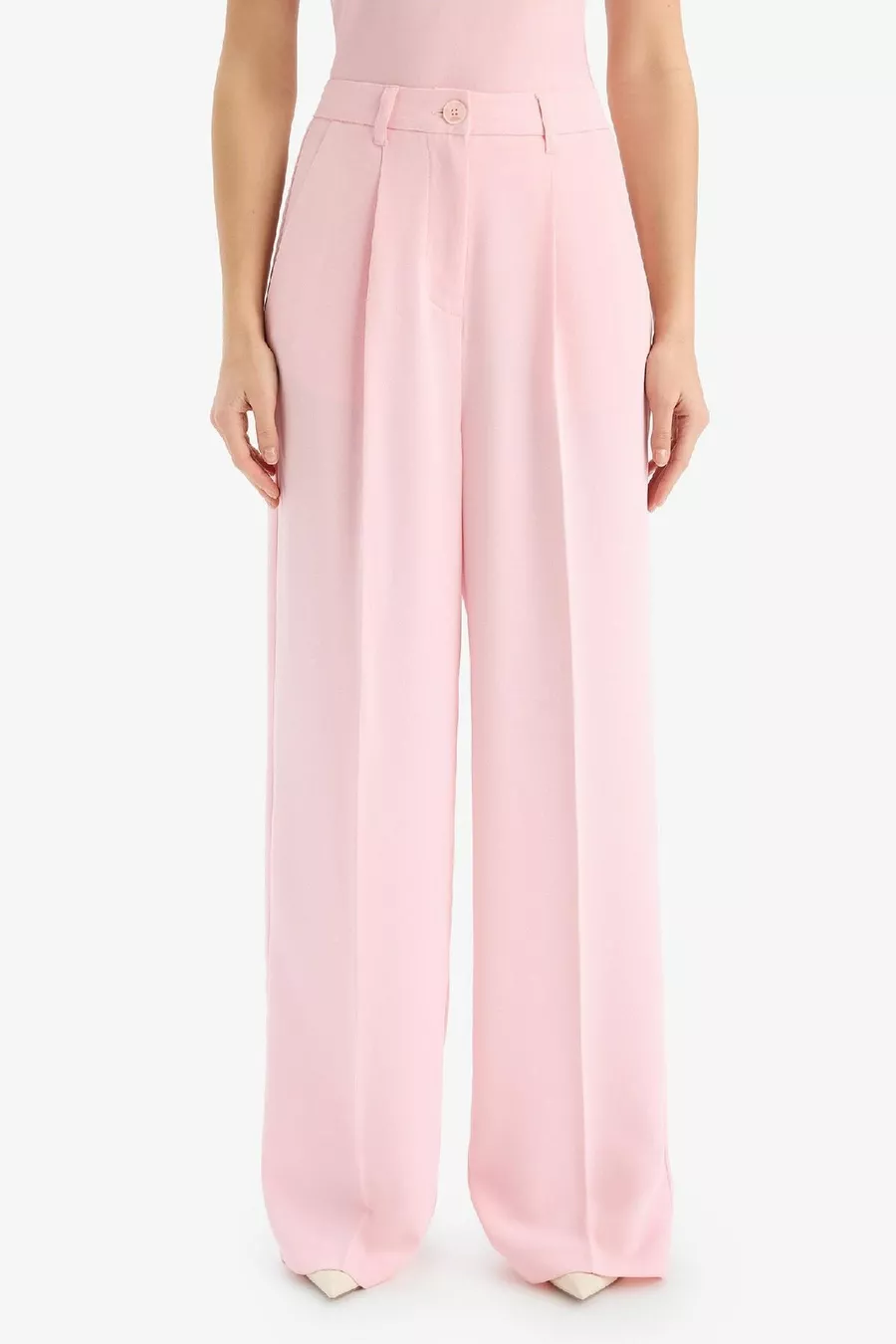 Afra x Wide Leg Crêpe Stoffen Palazzo Broek Met Zakken, Hoge Taille, Lange Lengte, Wijde Pijpen SM