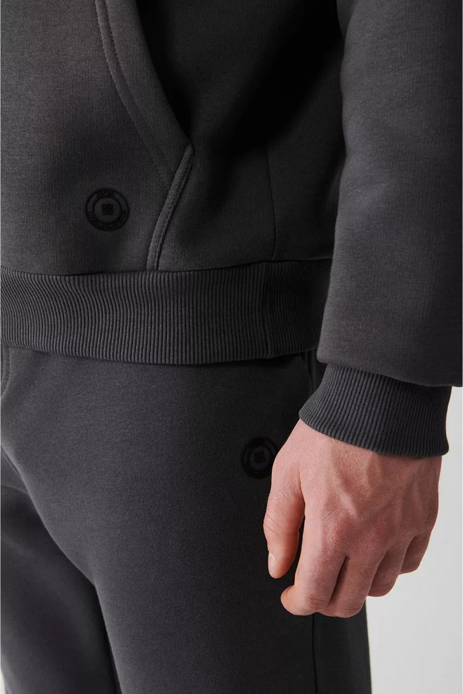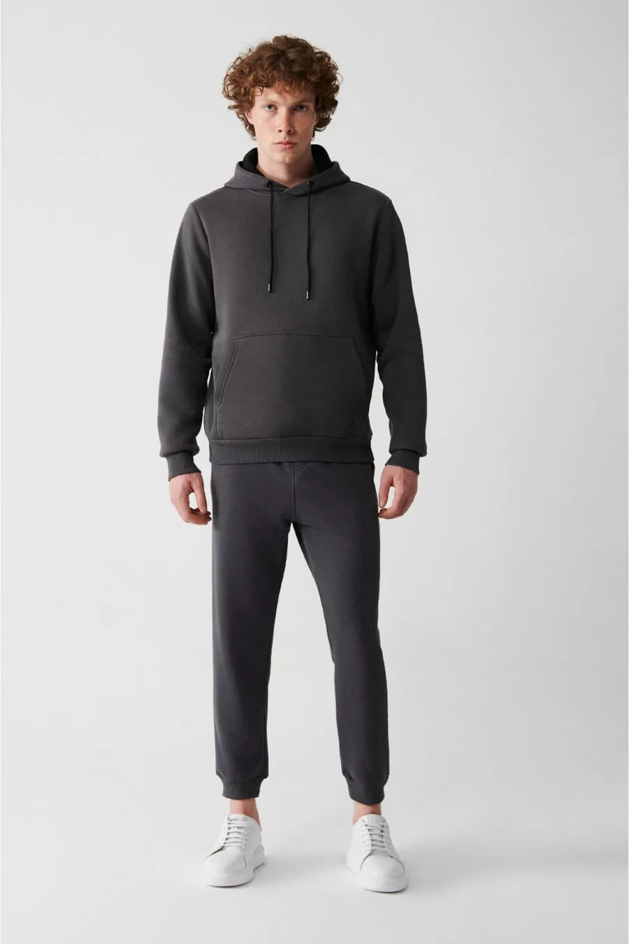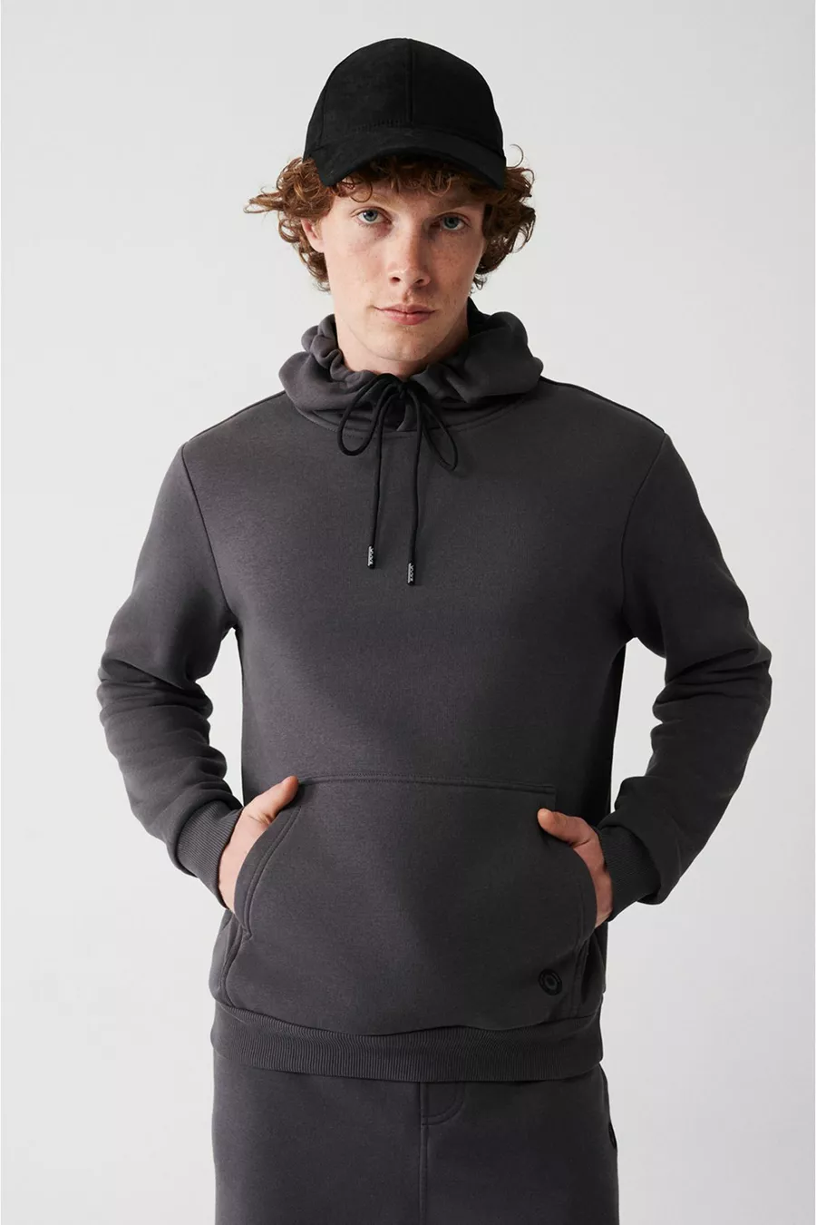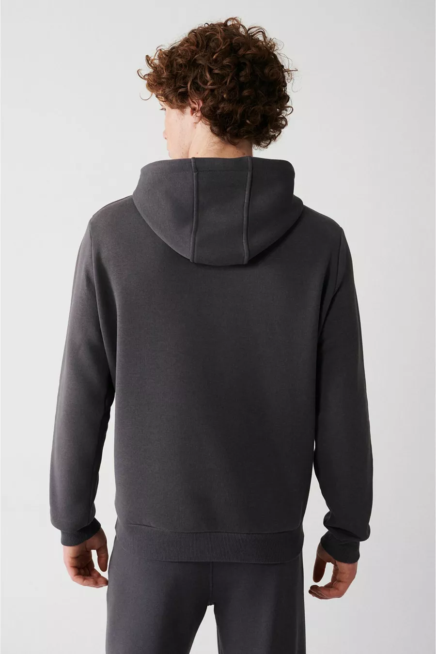 Antraciet 3-draads katoenen sweatshirt met capuchon voor heren