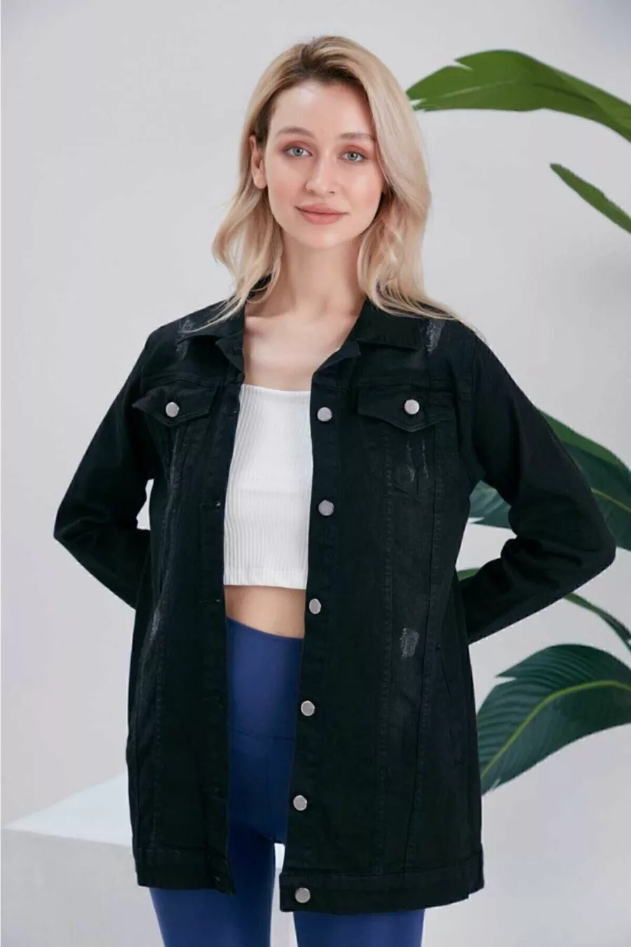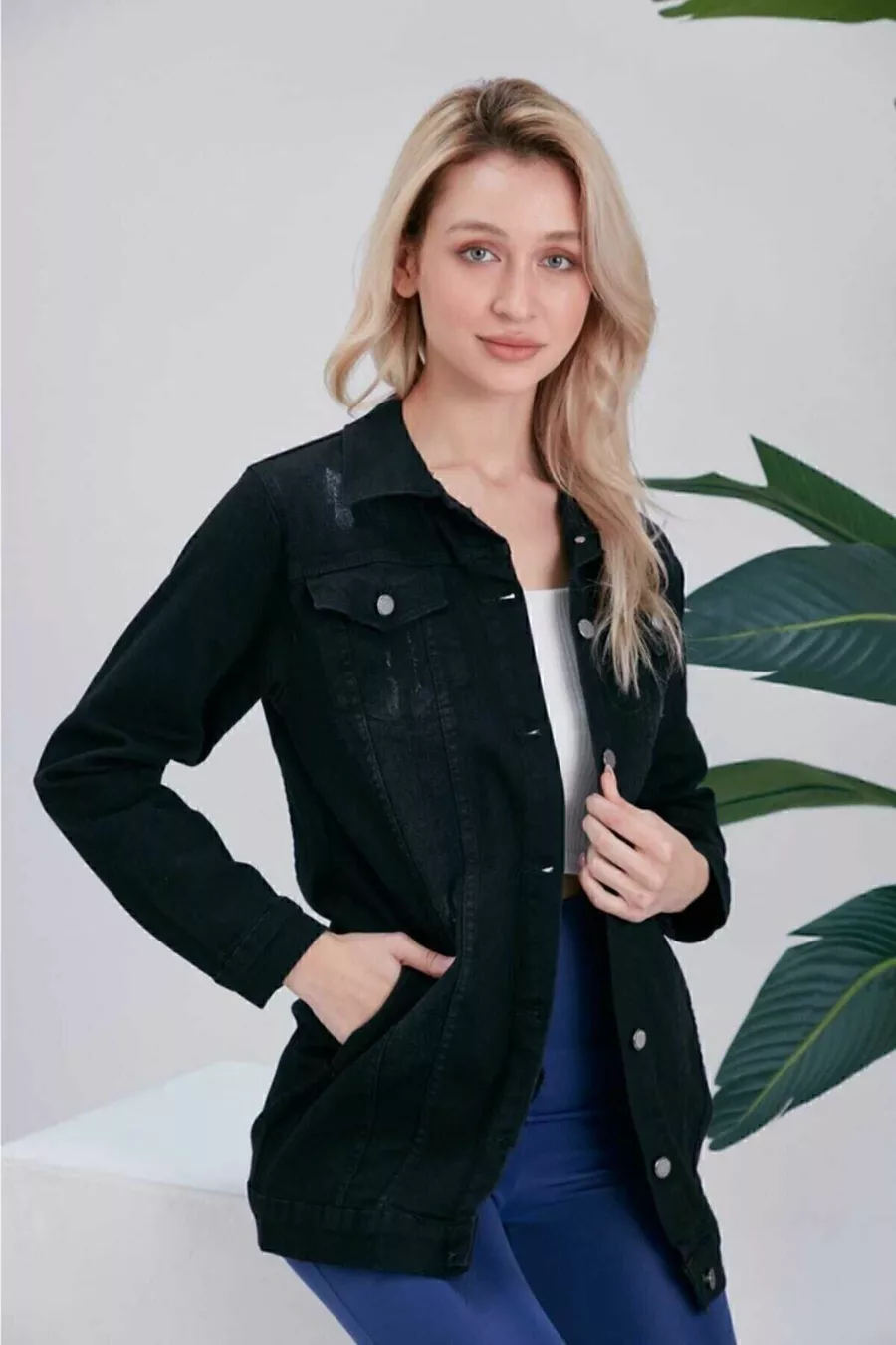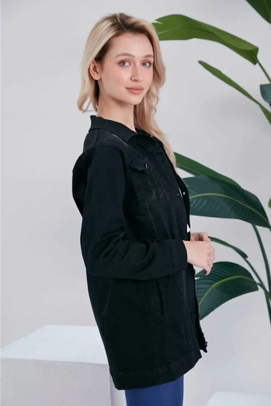 Mouwtype: Lange mouw Patroon: Effen Kraagtype: Overhemdkraag Materiaal: Stof Stoftype: Denim Kleur: Zwart Sluitingstype: Met knopen Zak: Klepzakh Mouwlengte: Lang Dikte: Gemiddeld Voering: Zonder voering Lengte: Midden Silhouet: Double-breasted Gebruiksomgeving: Dagelijks Duurzaamheidsdetail: Nee Riem/schouderband: Zonder riem Producttype: Gedrukt Wasinstructie: T09