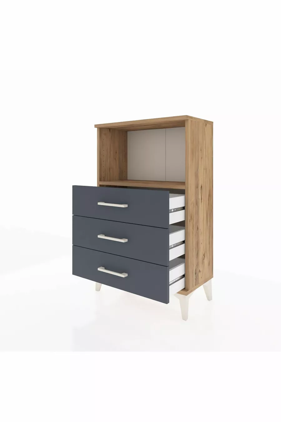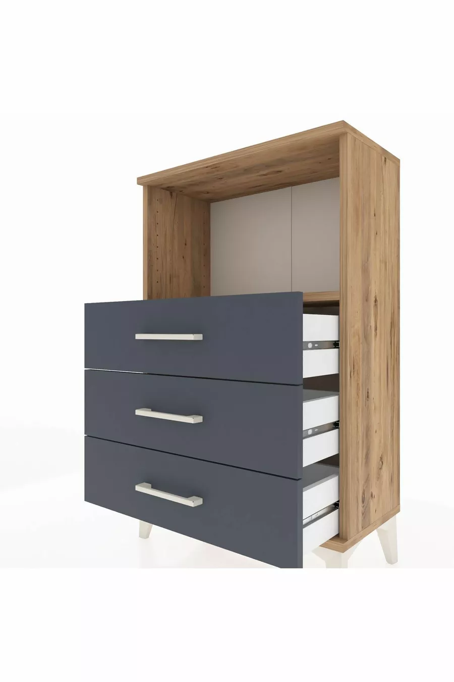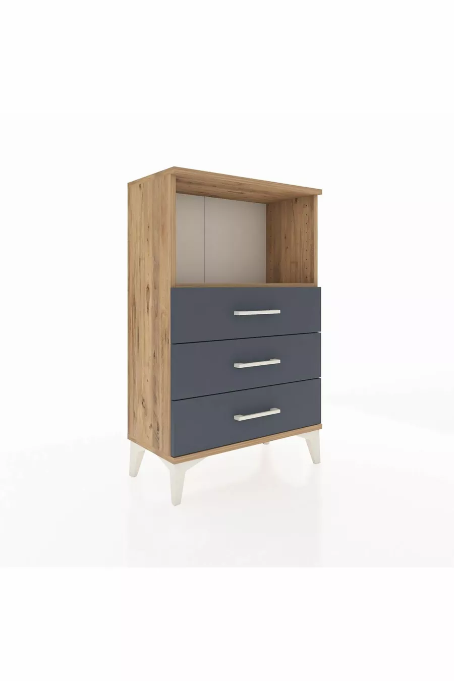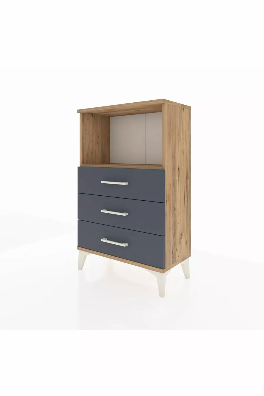 Materiaal: Suntalam Kleur: Veelkleurig Aantal laden: 3 Hoogte: 96 cm Breedte: 60 cm Diepte: 30 cm Stijl: Modern Thema / Stijl: Modern Herkomst: TR