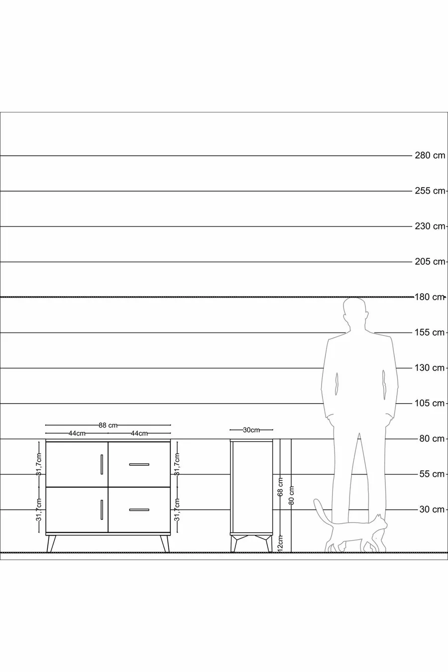 Kleur: Wit Materiaal: Suntalam Hoogte: 80 cm Breedte: 88 cm Diepte: 30 cm Aantal laden: 2 Producteigenschap: Met deksel Stijl: Modern Thema / Stijl: Modern Herkomst: TR