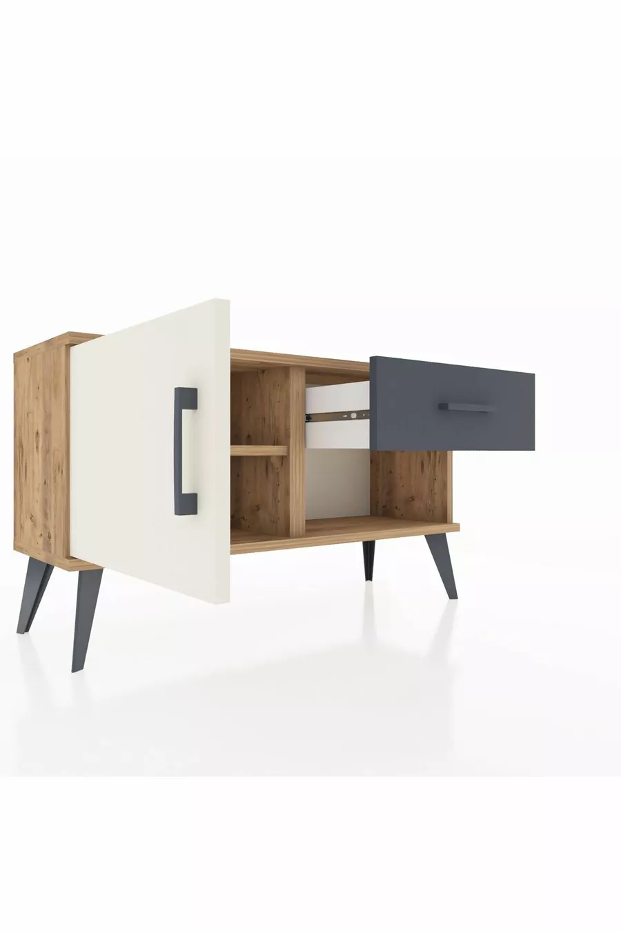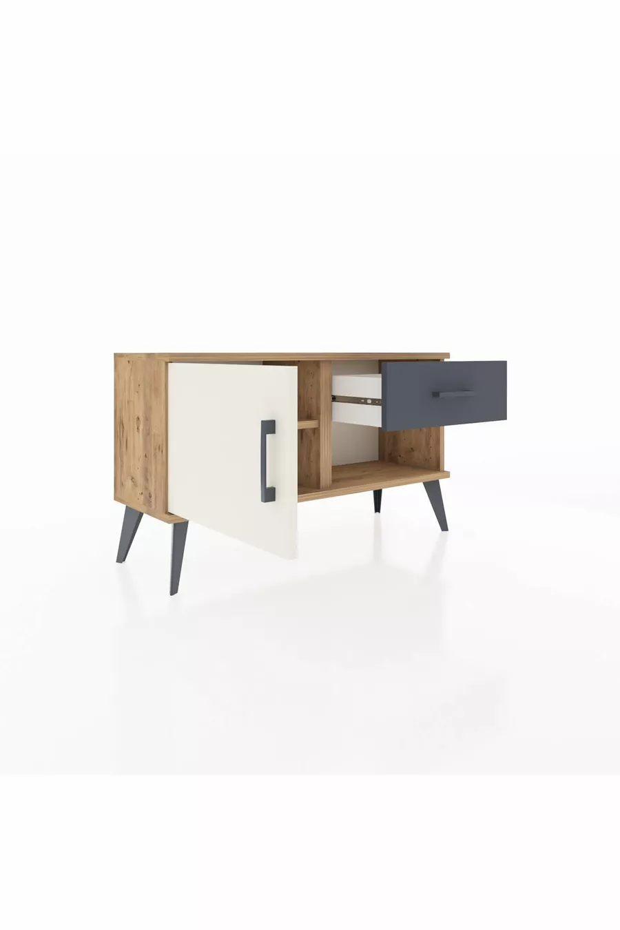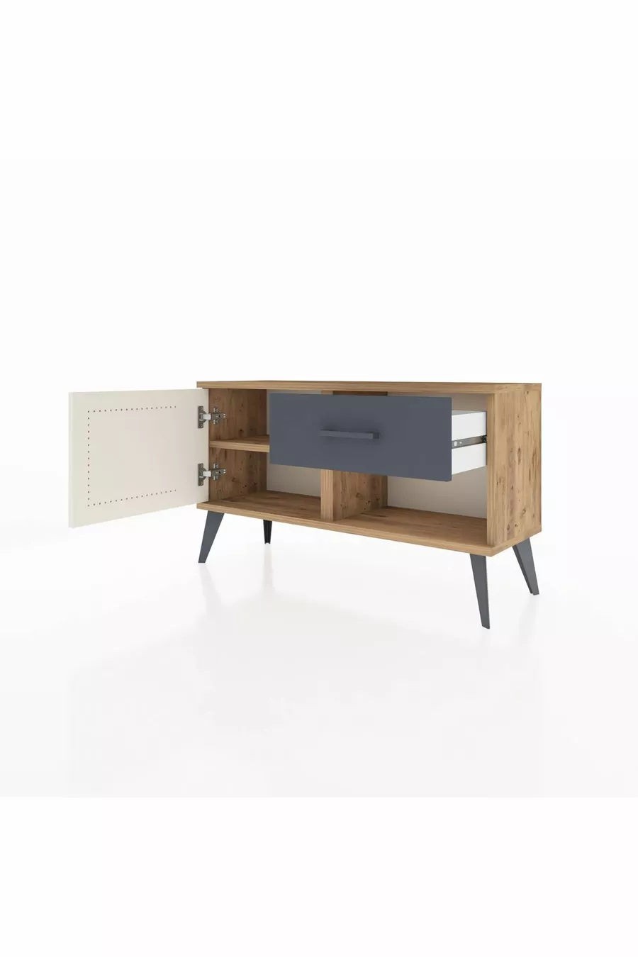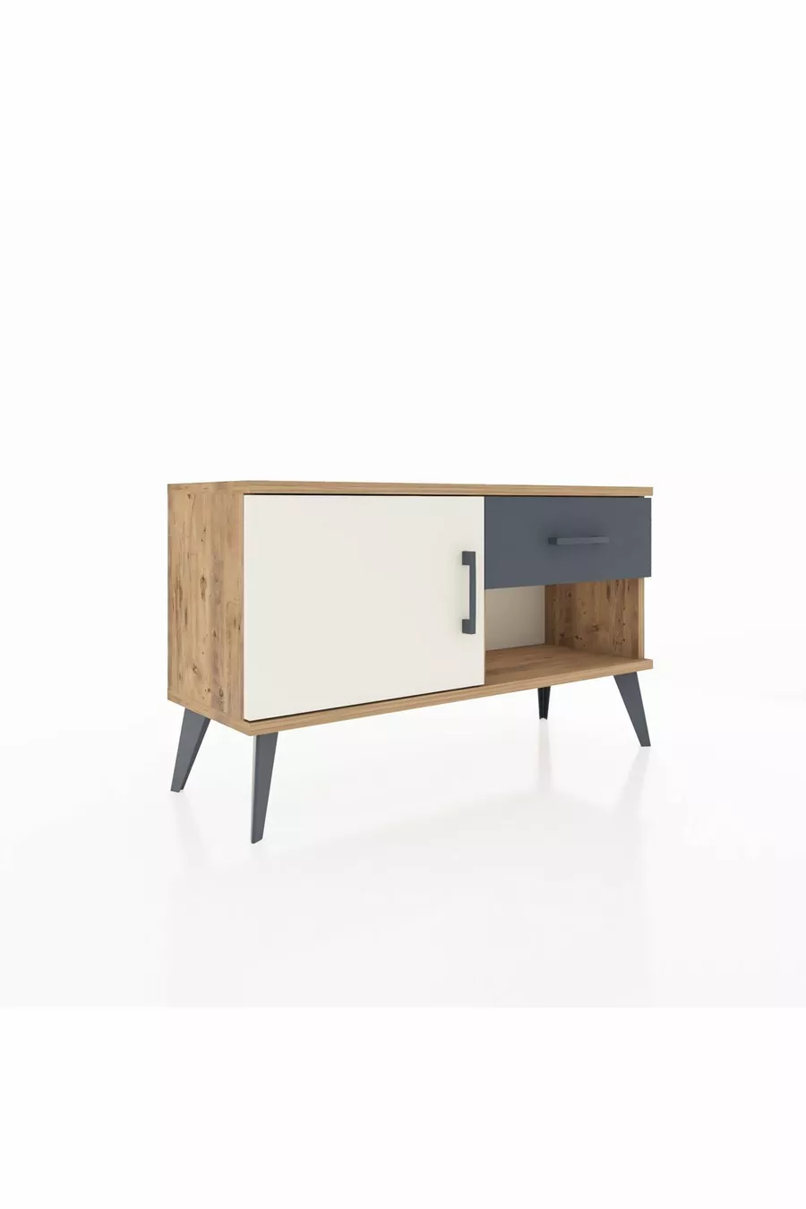 Arges Dressoir Een plank, een lade, één deur dennenhout-ijstoon/antraciet