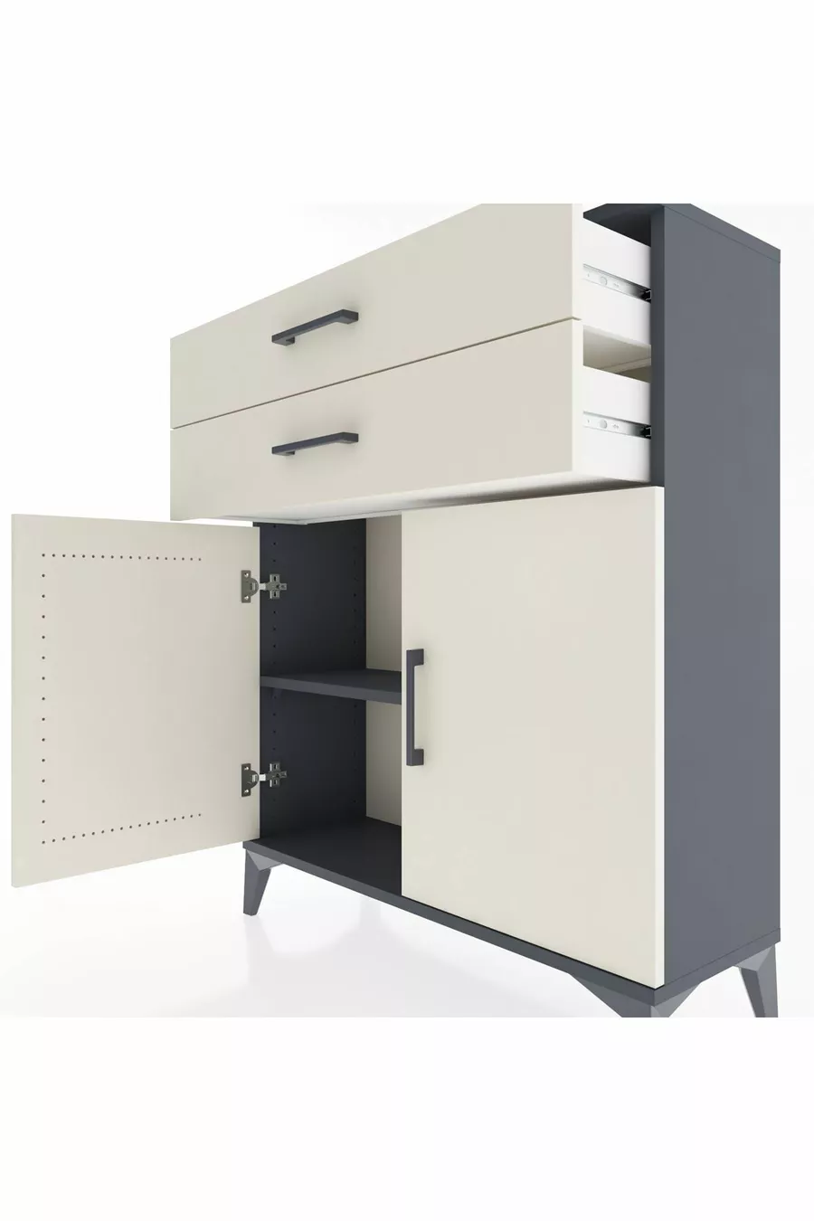 Arges Kast 2 Planken 2 Lade 2 Deuren Antraciet-Patrijssteen