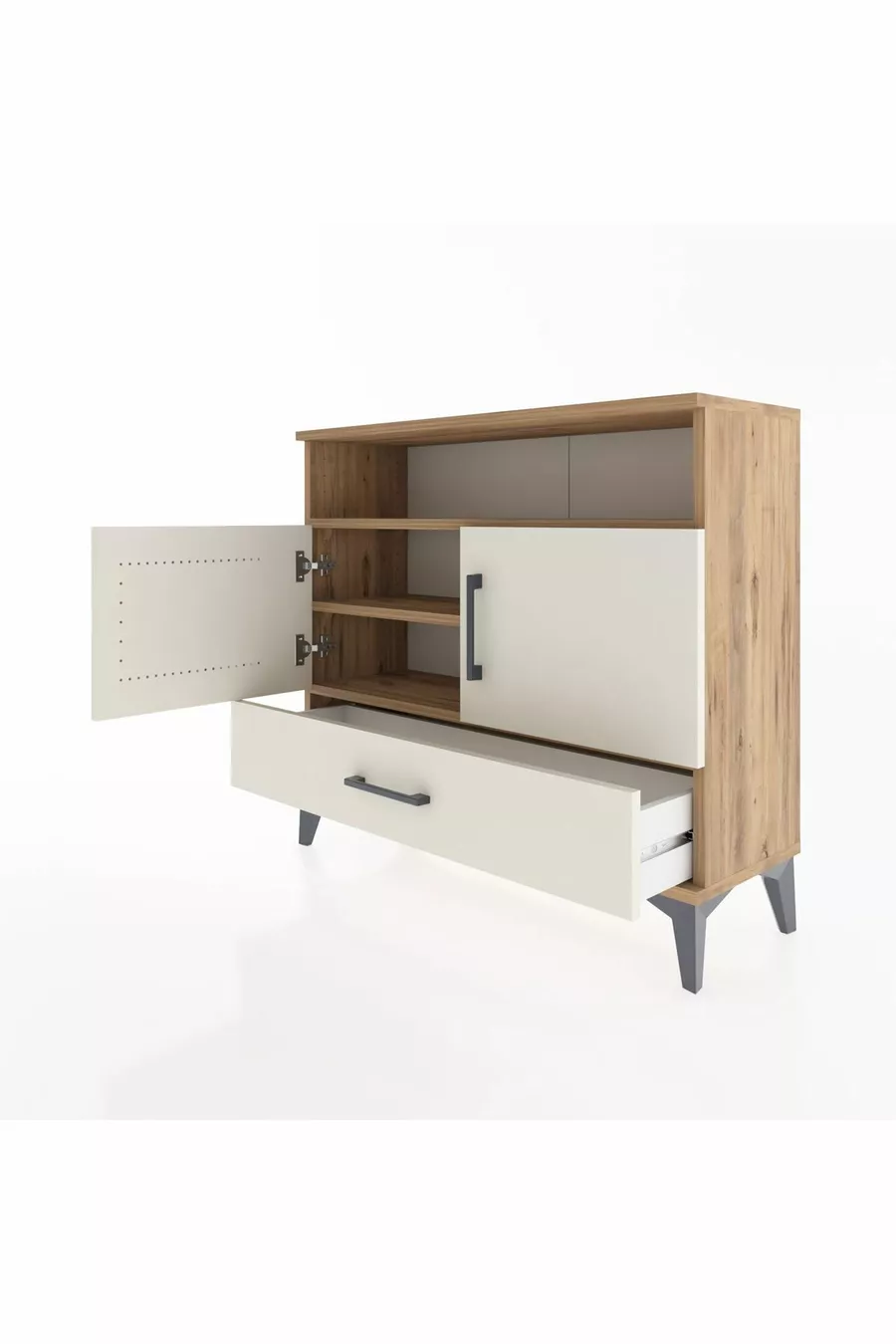 Kleur: Veelkleurig Materiaal: Spaanplaat Hoogte: 80 cm Breedte: 88 cm Diepte: 30 cm Aantal lades: 1 Productkenmerk: Met lade Stijl: Modern Thema / Stijl: Modern Herkomst: TR