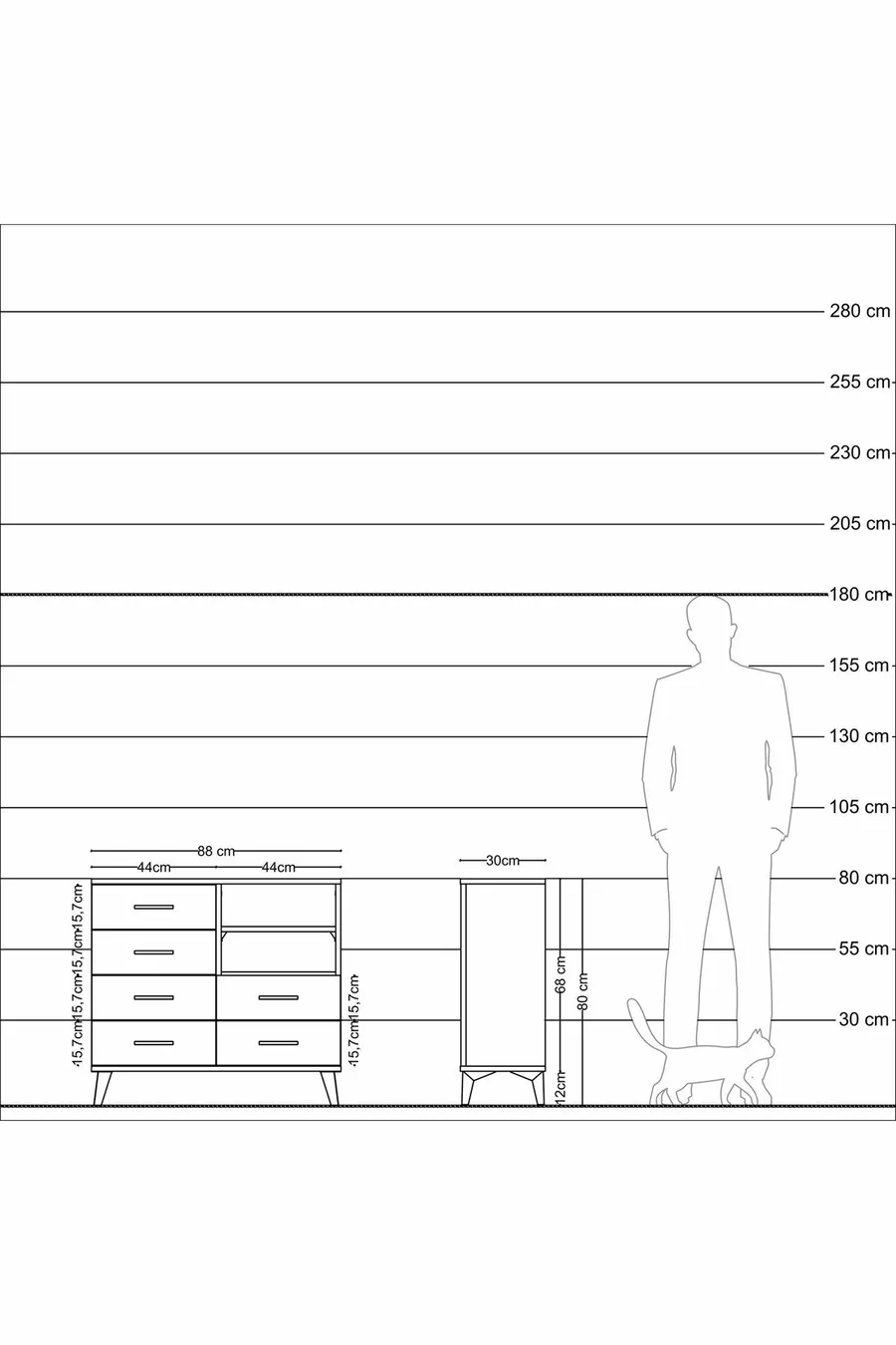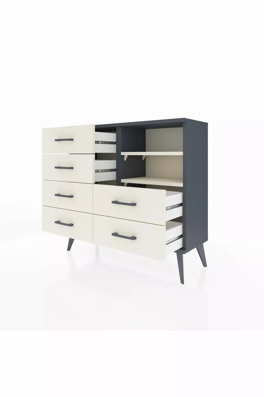 Kleur: Wit Materiaal: Suntalam Hoogte: 80 cm Breedte: 88 cm Diepte: 30 cm Aantal laden: 6 Producteigenschap: Met deksel Stijl: Modern Thema / Stijl: Modern Herkomst: TR