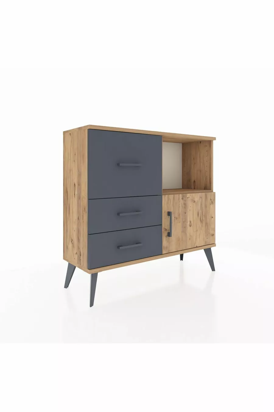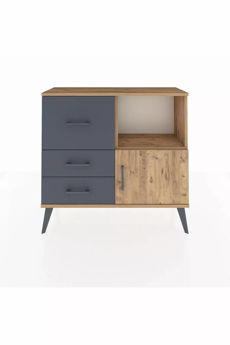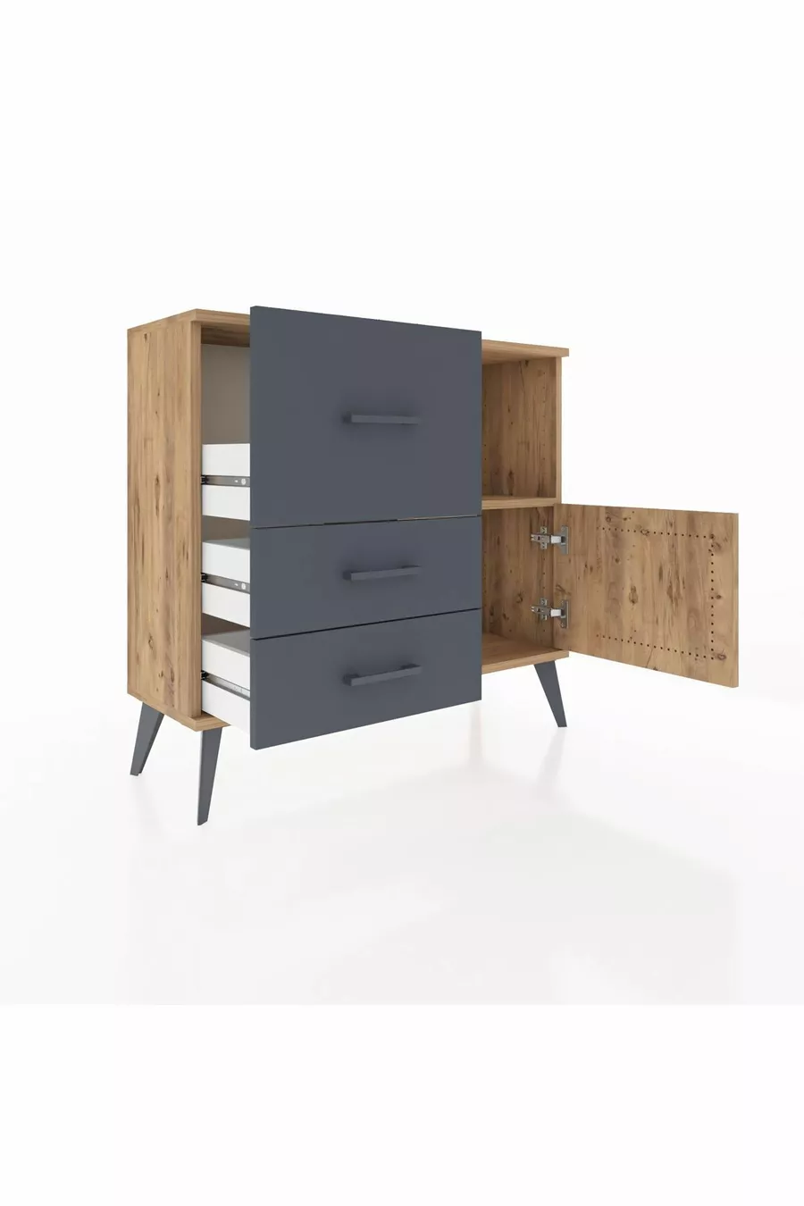 Arges Nachtkastje Met Één Plank, 3 Lades En Één Deur, Dennen-Antraciet