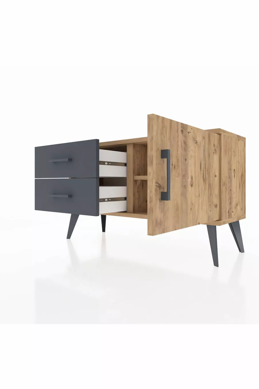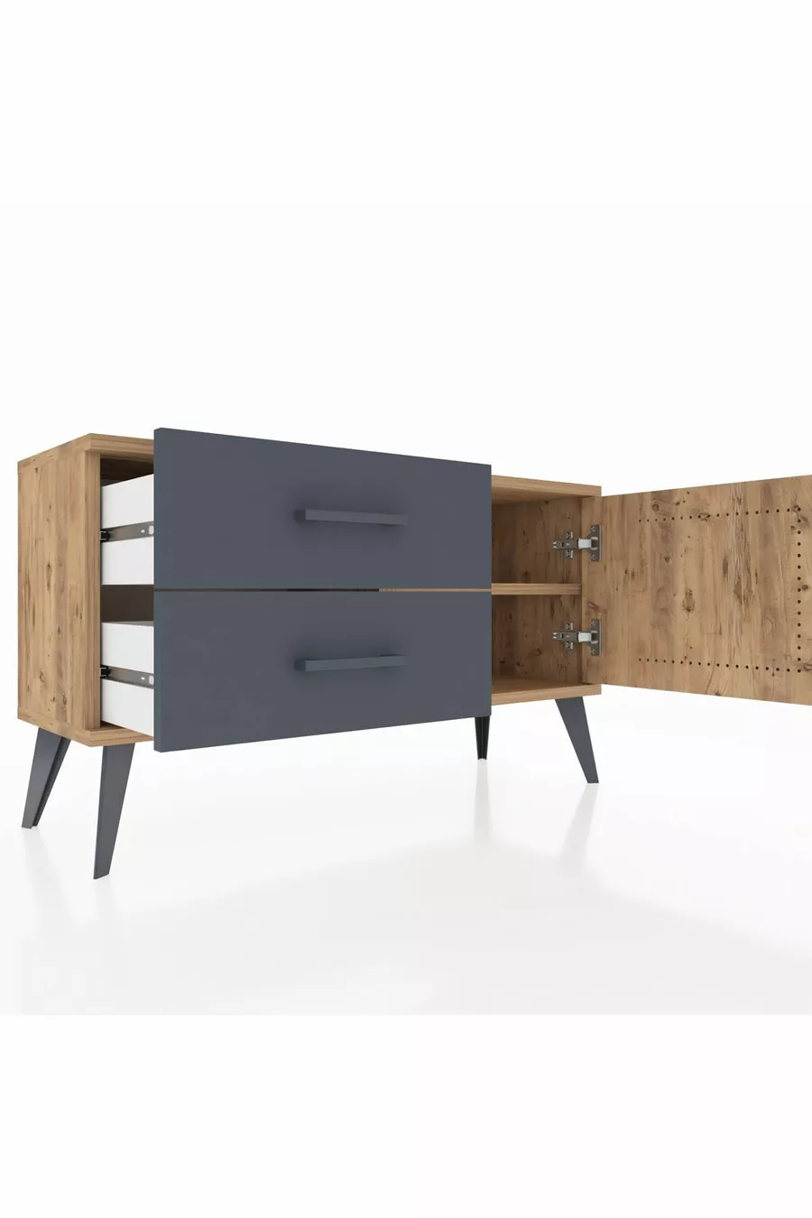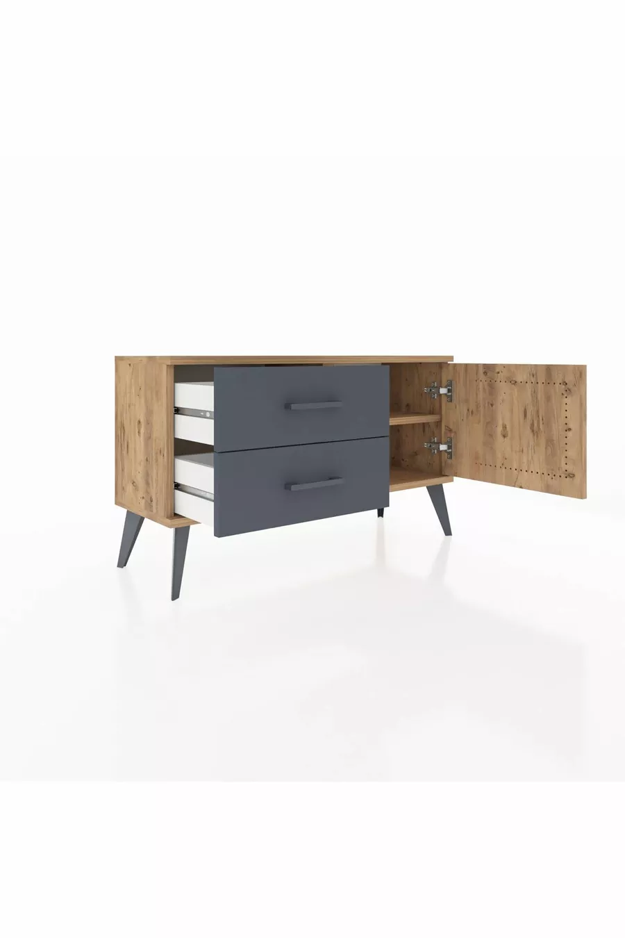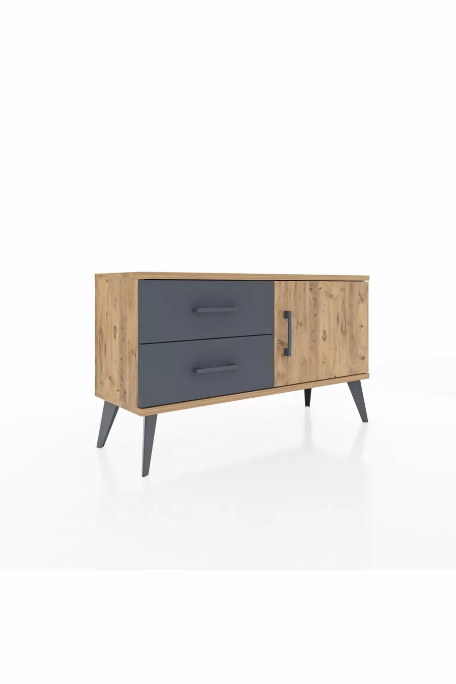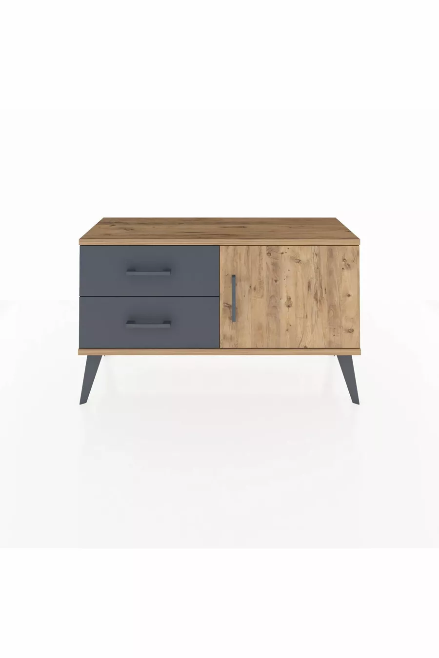Arges Nachtkastje Met Één Plank, 2 Lades En Één Deur, Dennenhout-Den/Aantraciet