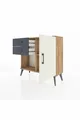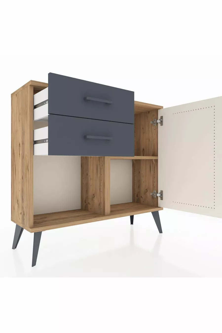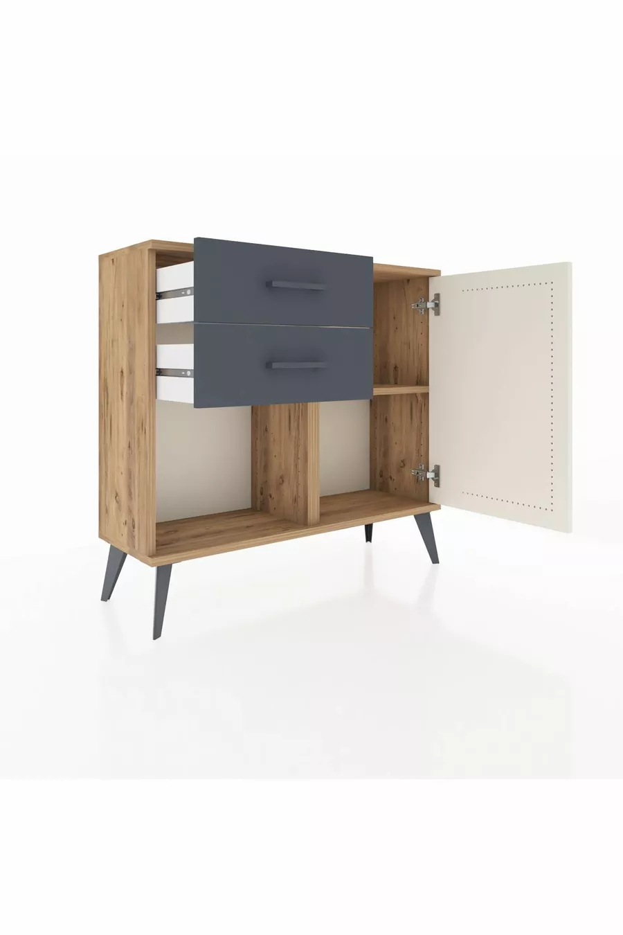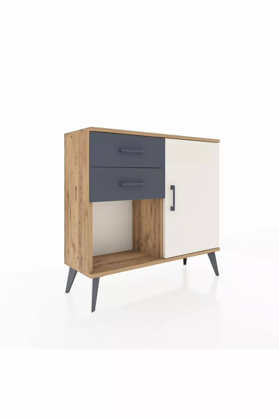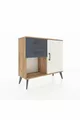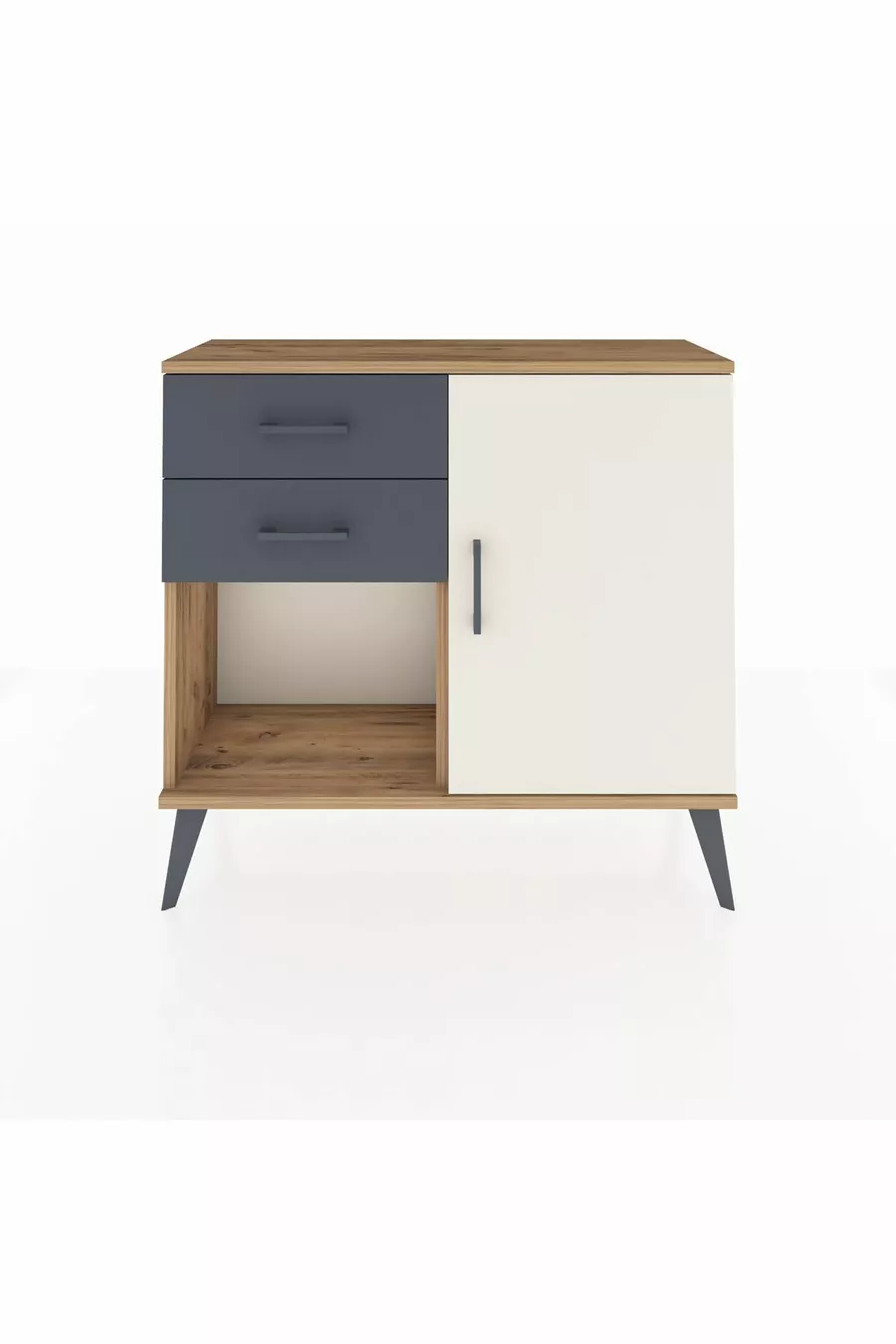 Arges Nachtkastje Met Één Plank, 2 Lades En Één Deur, Dennenhout-Steen/Ebbenhout