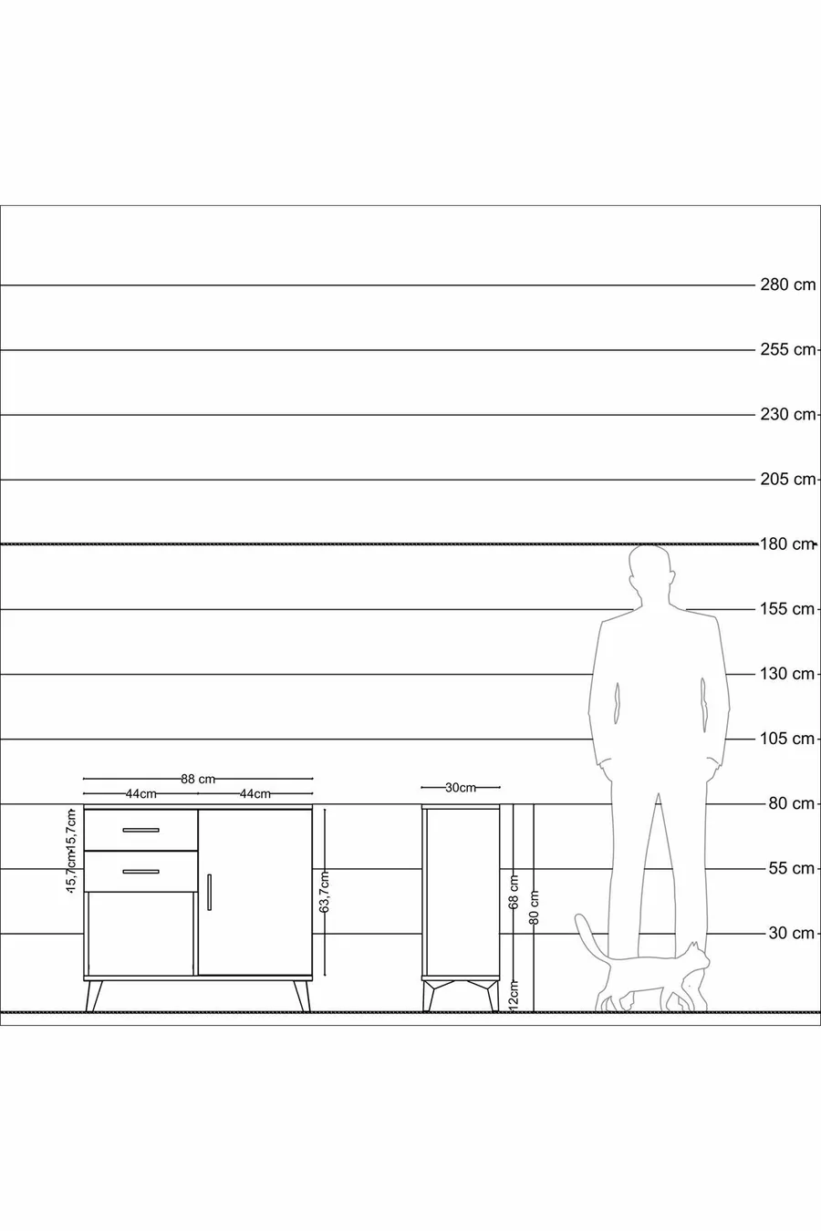Kleur: Wit Materiaal: Suntalam Hoogte: 80 cm Breedte: 88 cm Diepte: 30 cm Aantal laden: 2 Producteigenschap: Met deksel Stijl: Modern Thema / Stijl: Modern Herkomst: TR