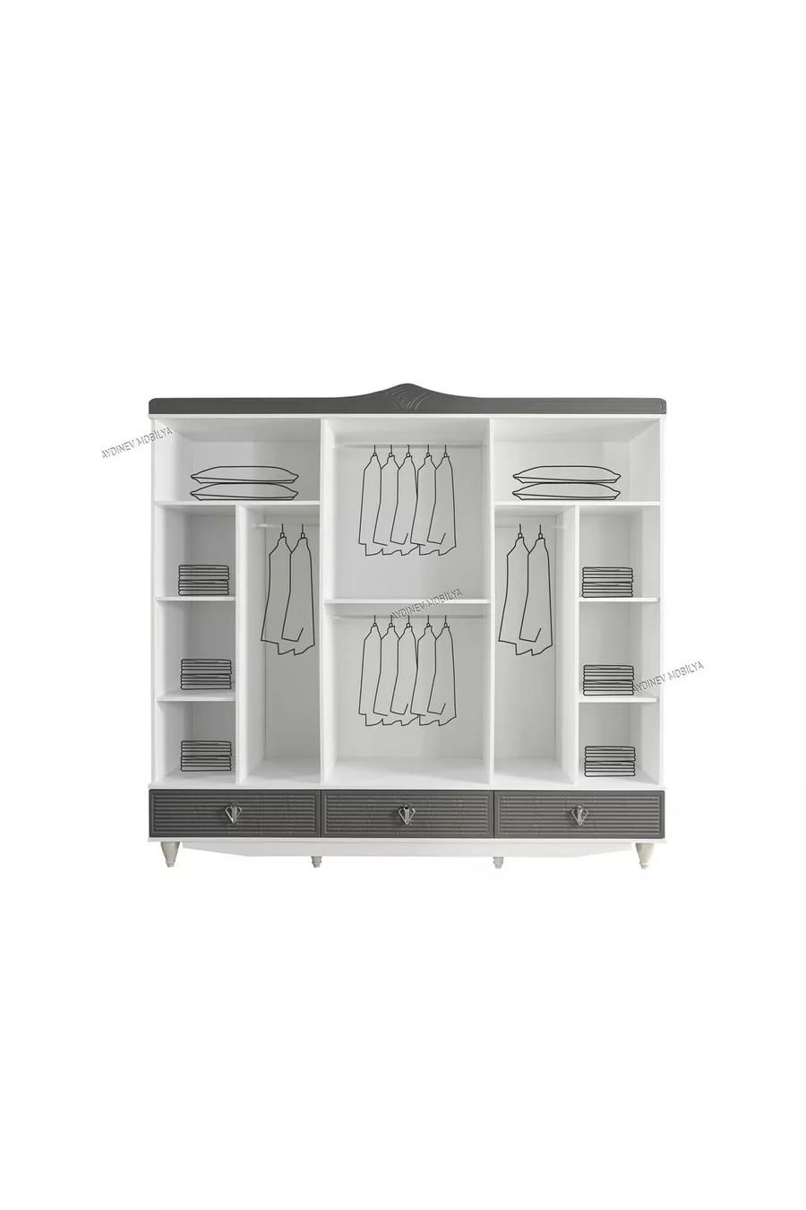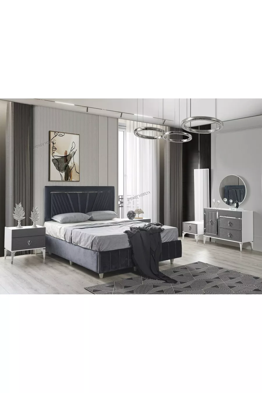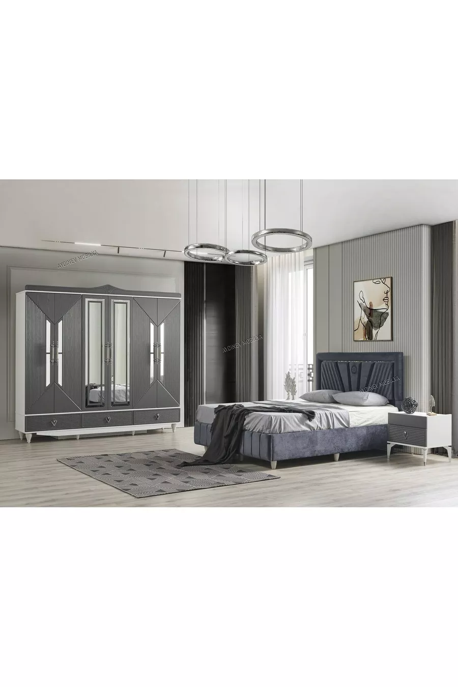 Setinhoud: Kast + 2 nachtkastjes + ladekast + bedhoofdeinde