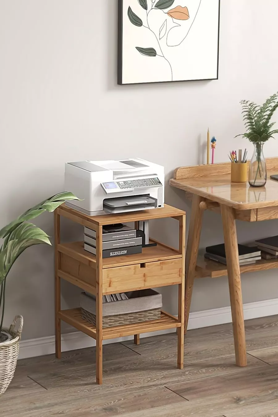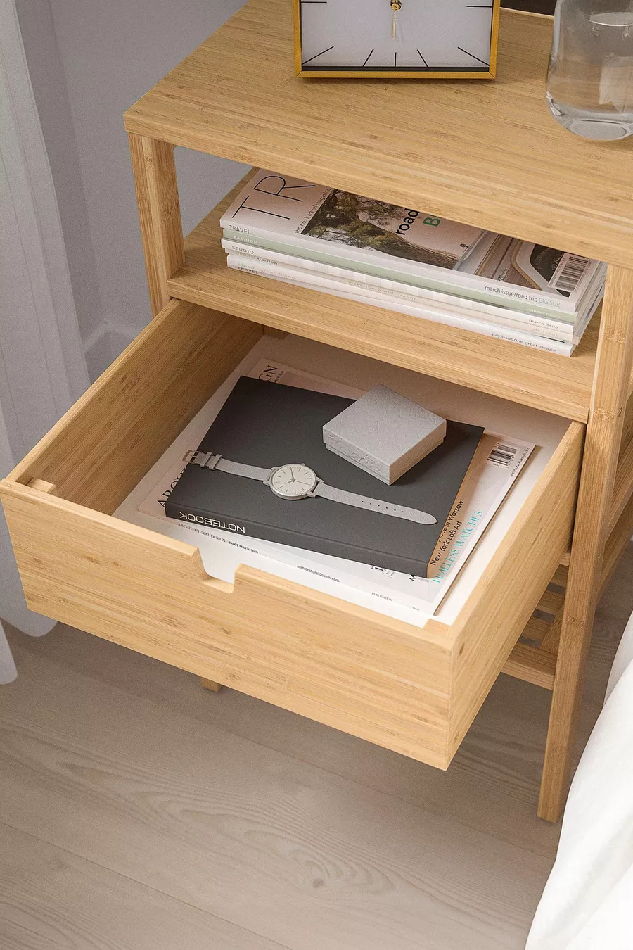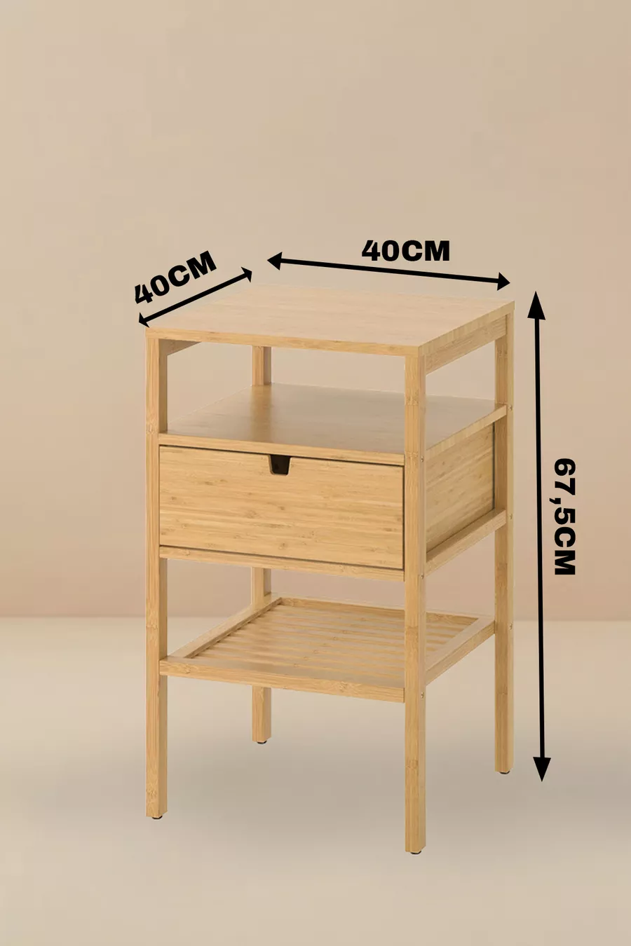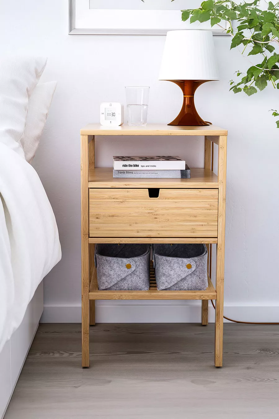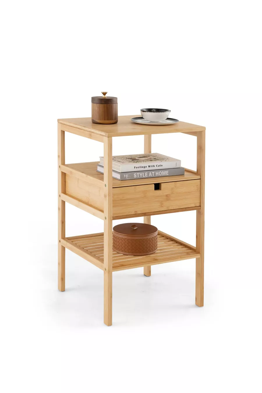 Bamboe nachtkastje met lade en plank, slaapkamer zijtafel, ladekast organizer