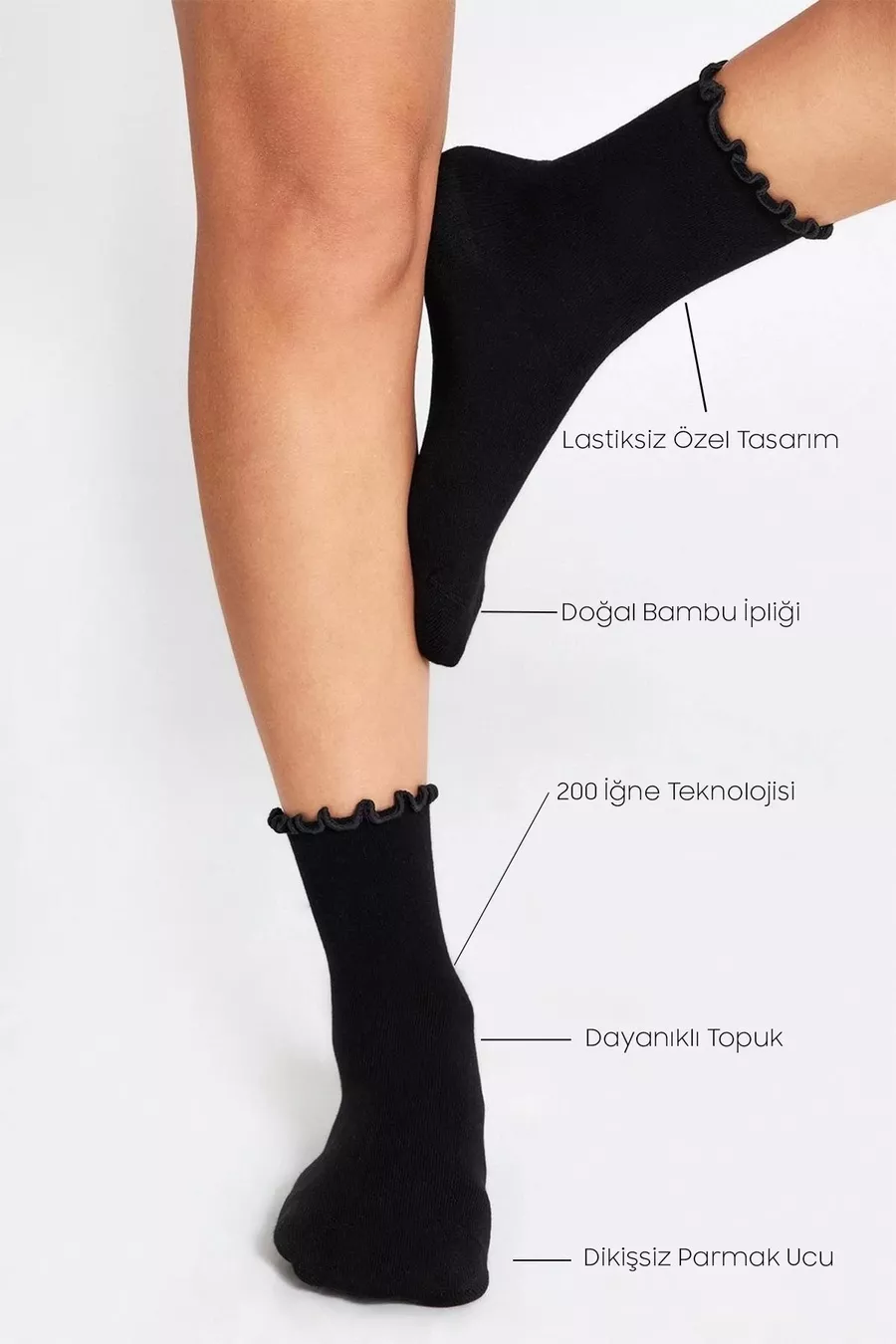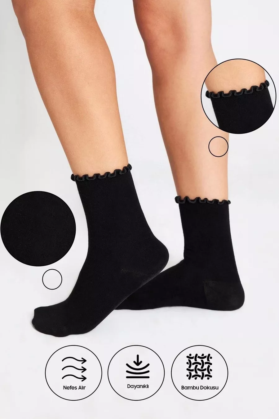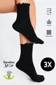 Bambu Dames Zwarte Ruffle Zonder Elastiek Naadloze Dames Sok 3-pack Zwart / Laat Geen Sporen Achter / Niet strakke Sokken