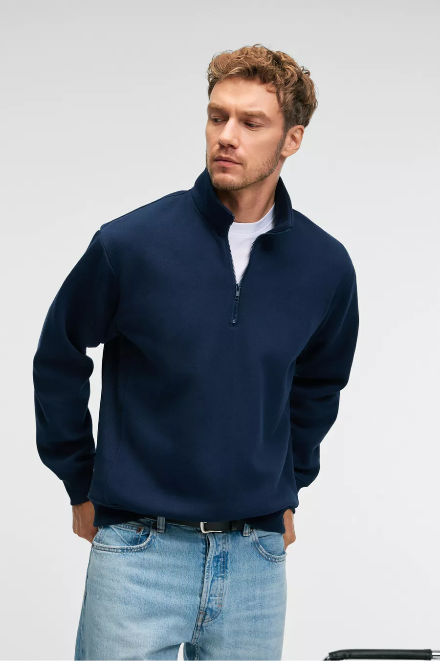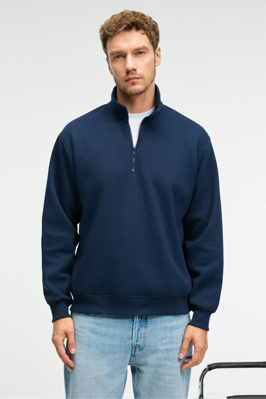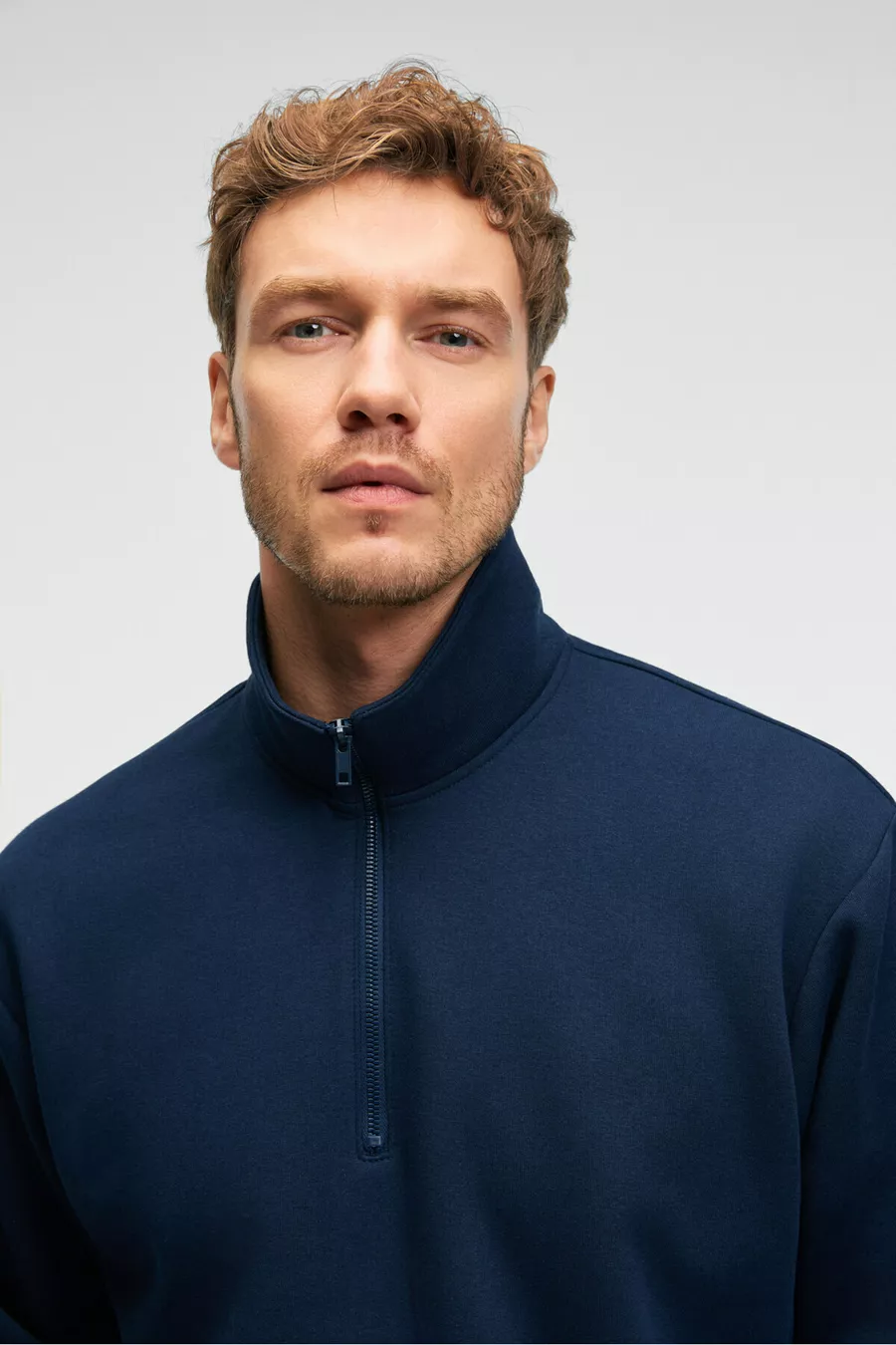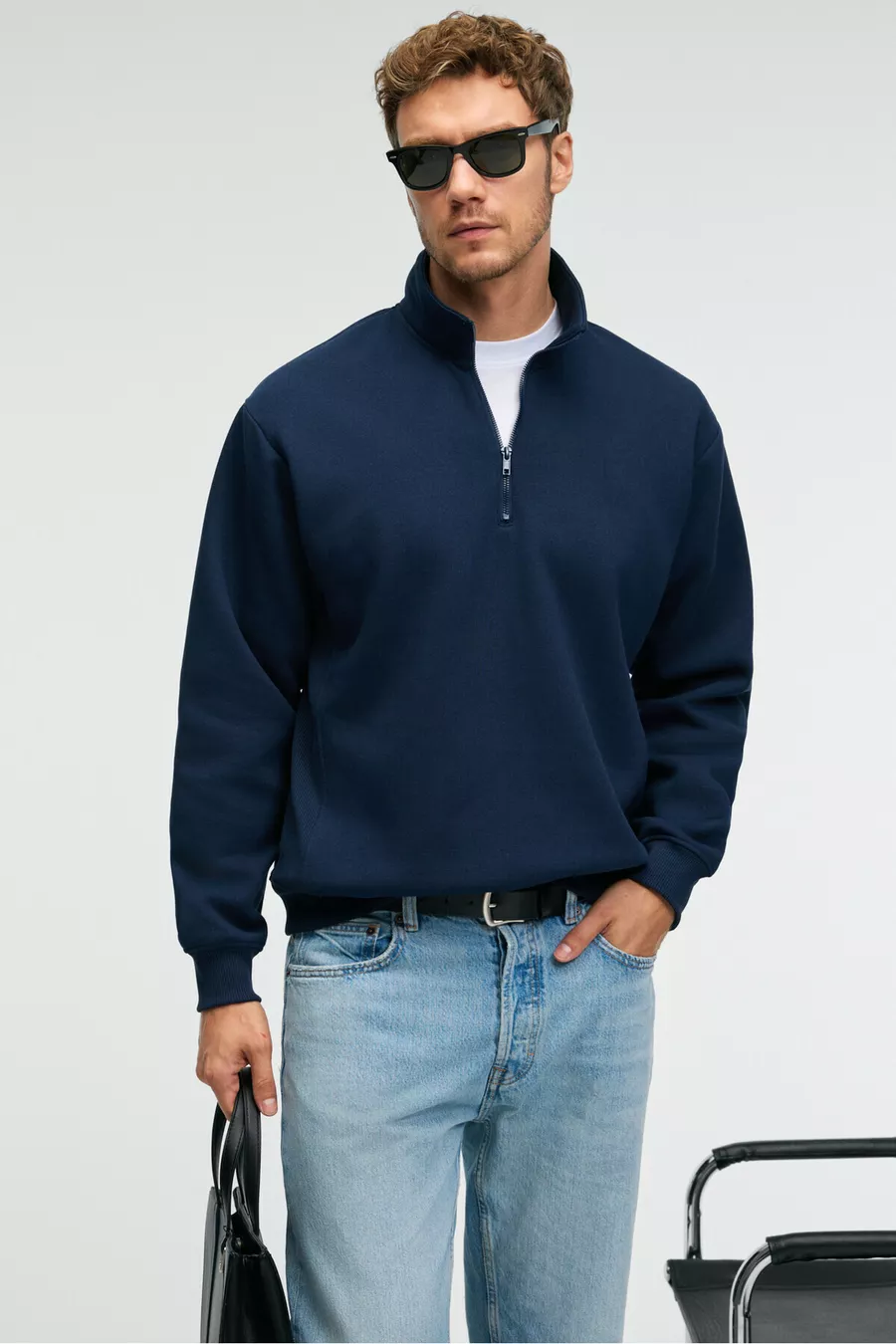 BAXTER Heren Sweatshirt met Rits en Rechte Kraag in Donkerblauw