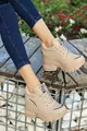 Basistype: Concealed Infill zool Buitenmateriaal: Nepleer Sluitingstype: Vetermaker Kleur: Beige Materiaal: Nepleer Bovenmateriaal: Imitatieleer Voeringsmateriaal: Imitatieleer Inlegzoolmateriaal: nepleer Zoolmateriaal: Poly Hiellengte: Medium hiel (5-9 cm) Duurzaamheidsdetails: Nee Hieltype: Wighiel Materiaalcomponent: 100% handmatig Medium: Sportkleding Wasinstructie: Type 4 Patroon: Effen Stoftype: Nepleer Productdetails: Nepleer