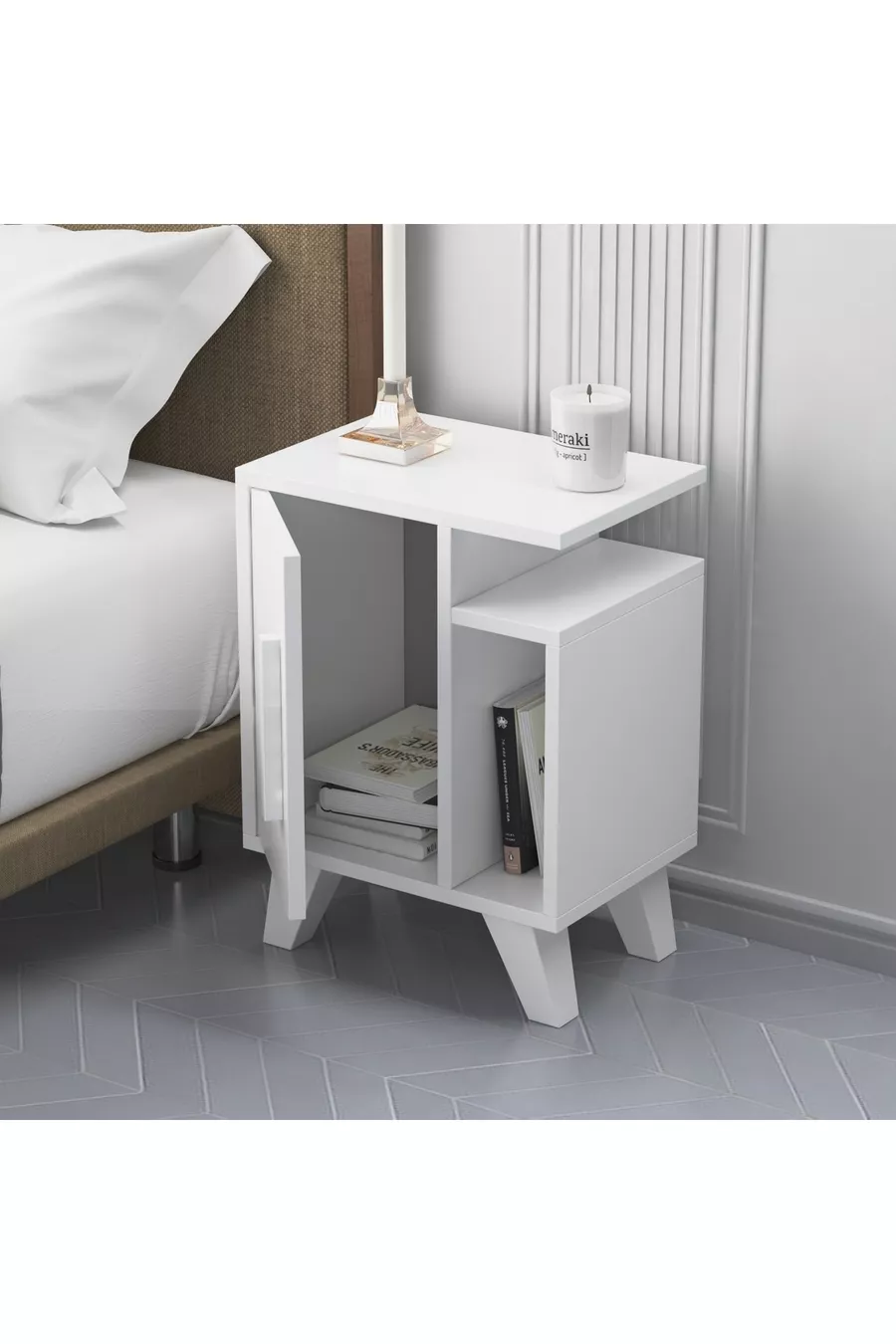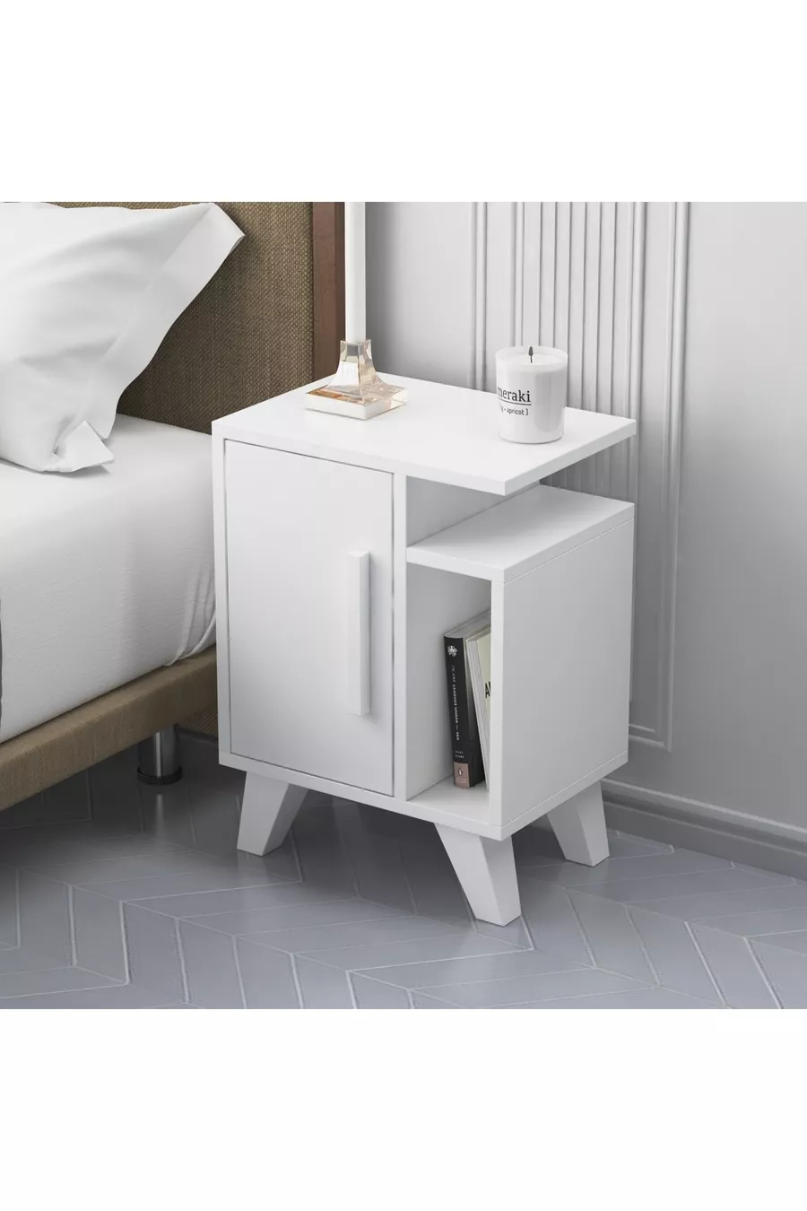 Materiaal: Suntalam Kleur: Wit Aantal lades: 1 Hoogte: 56 cm Breedte: 41 cm Diepte: 29 cm Stijl: Modern Thema / Stijl: Modern Kenmerk: Lang