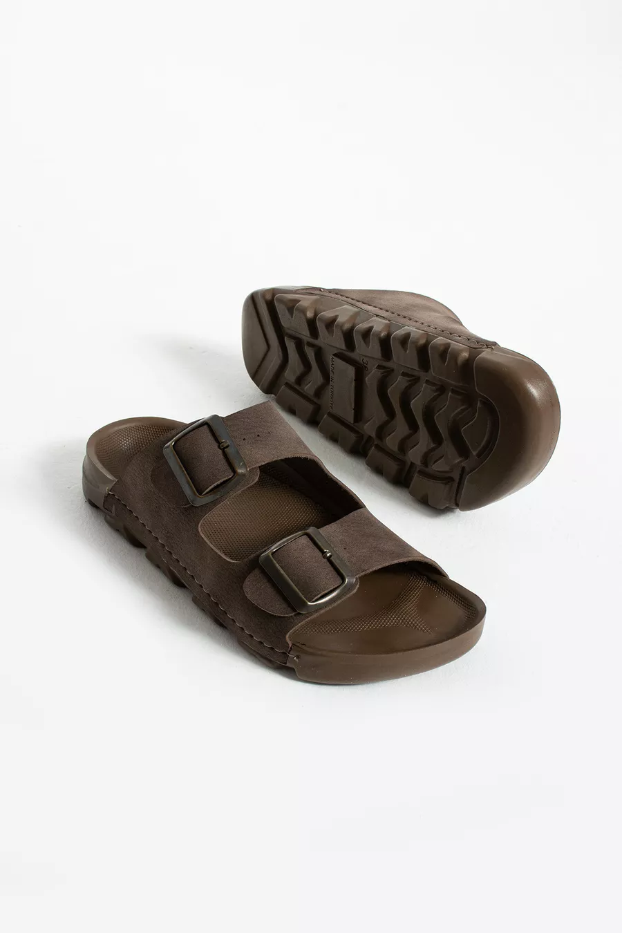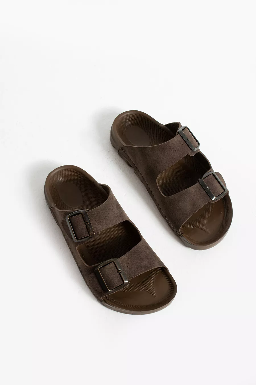 Bruine Zomerse Unisex Slippers met Dubbele Gesp, Zacht en Licht