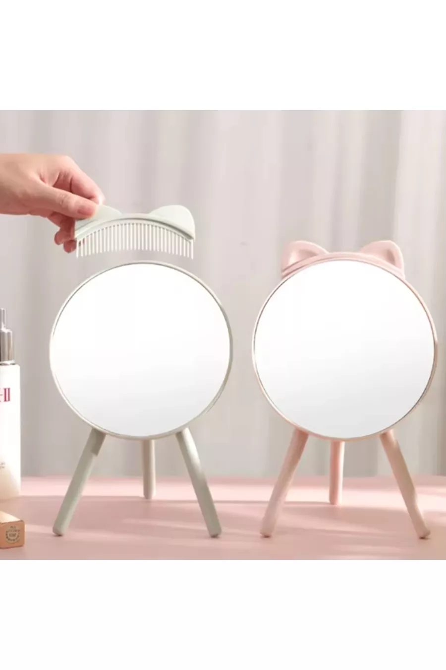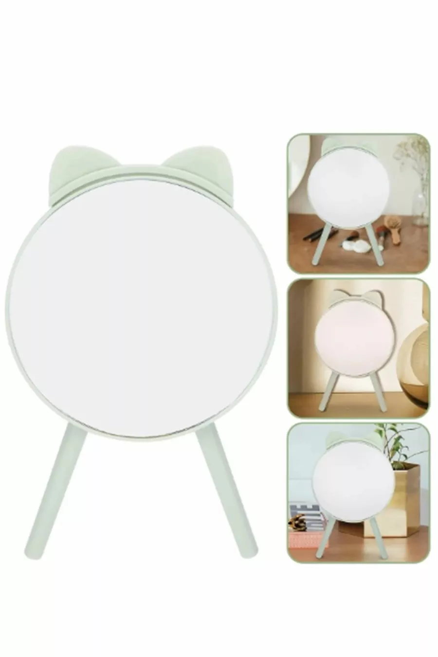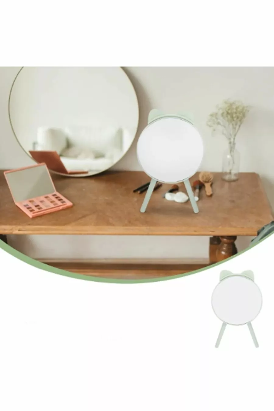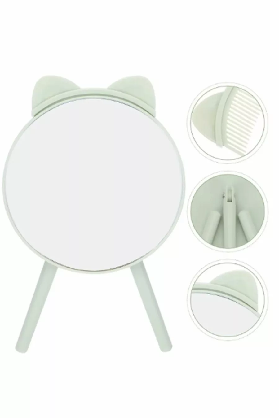Bureau Decoratieve Schattige Kat Oren Make-up Spiegel Watergroene Prinsessen Spiegel Haarborstel