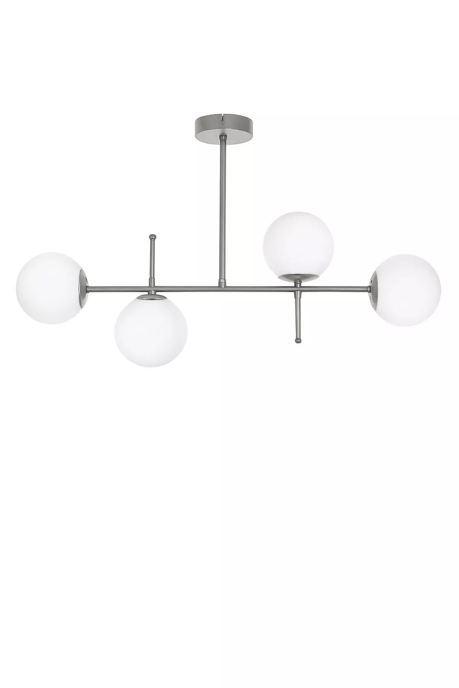 Materiaal: Glas Model: Modern Lampsoort: E27 Aantal lampfittingen: 4 Kleur: Wit Afmetingen: 60 x 15 Hoogte: 35 - 50 cm Gebruiksgebied: Woonkamer Herkomst: KZ Kenmerk: Lang