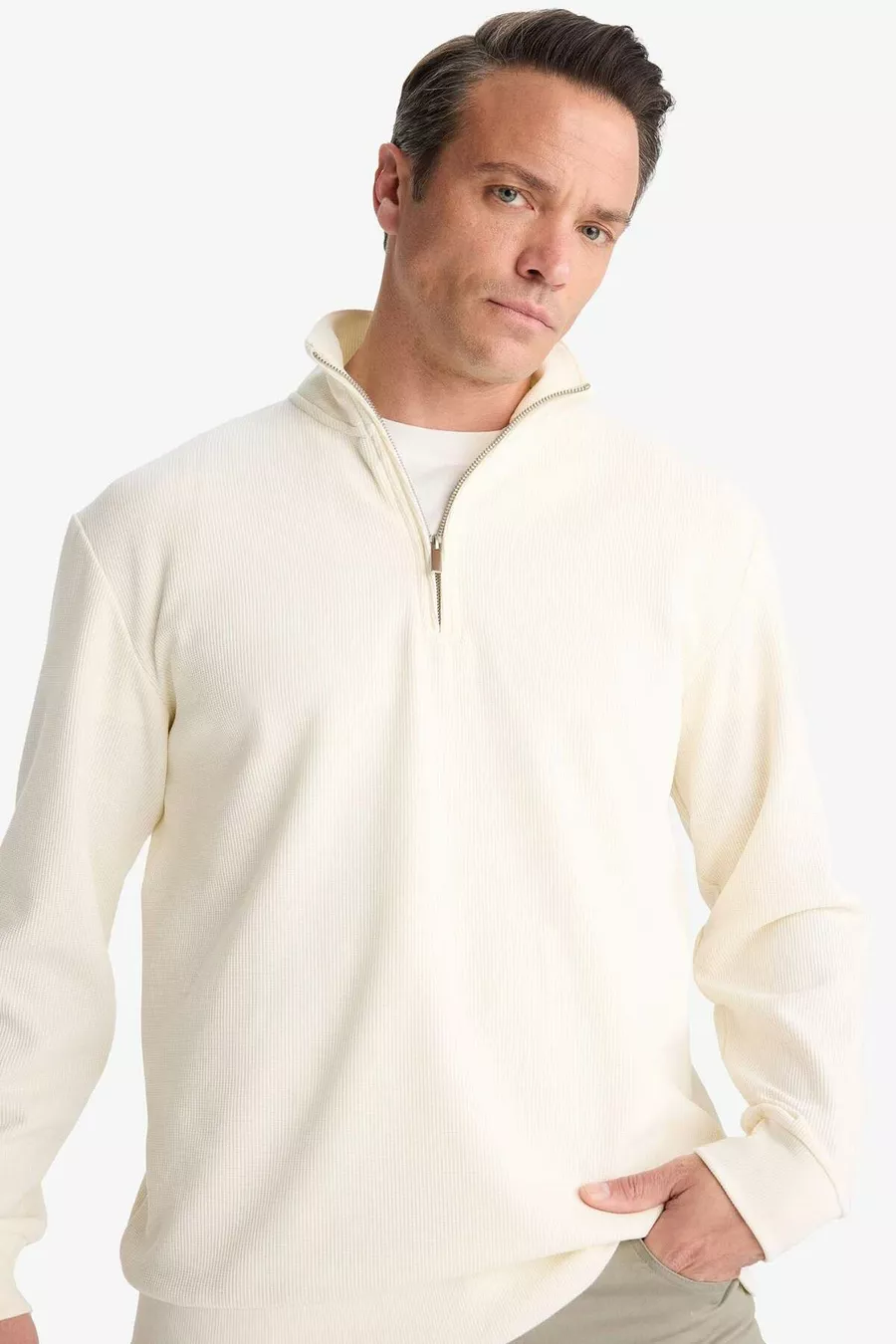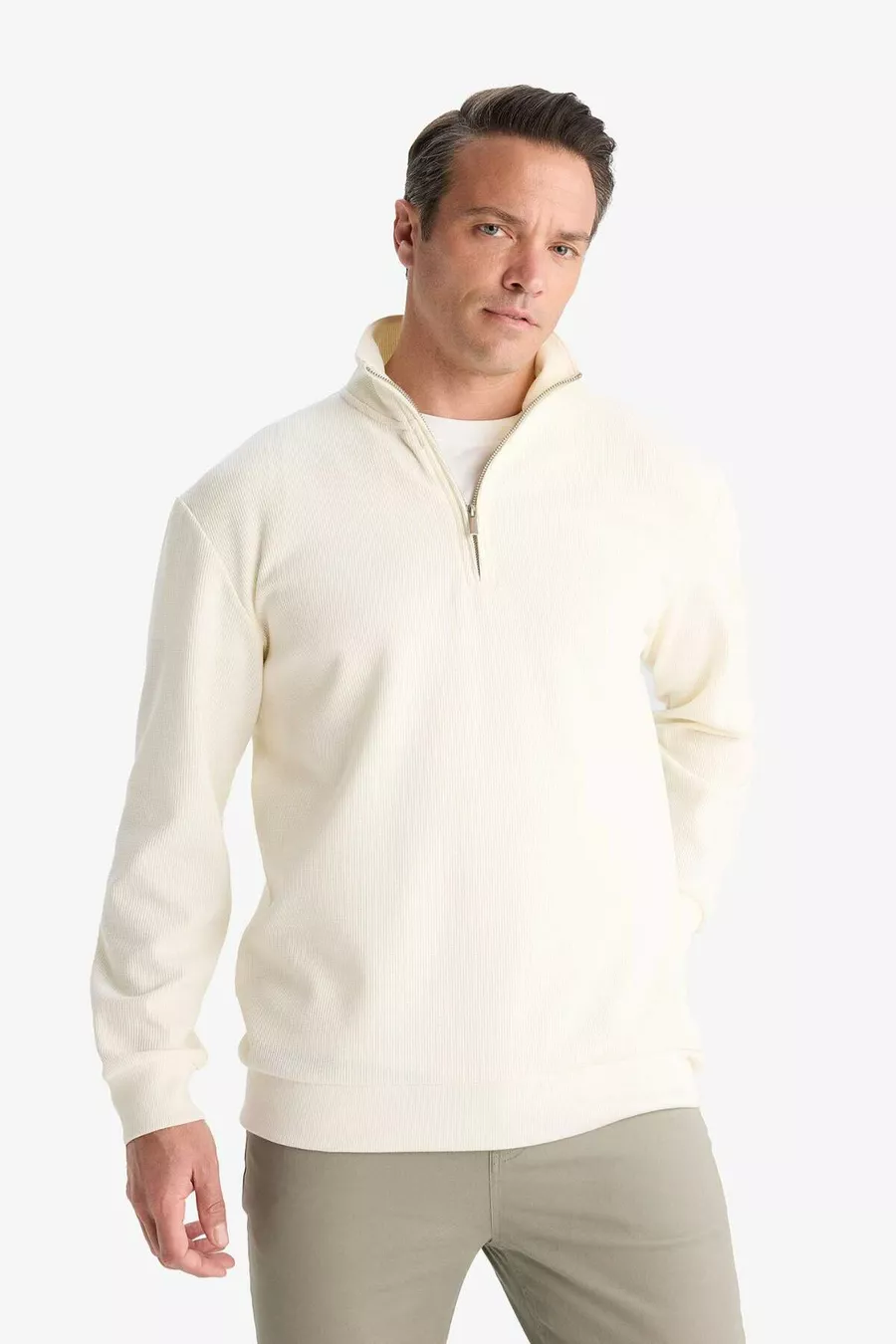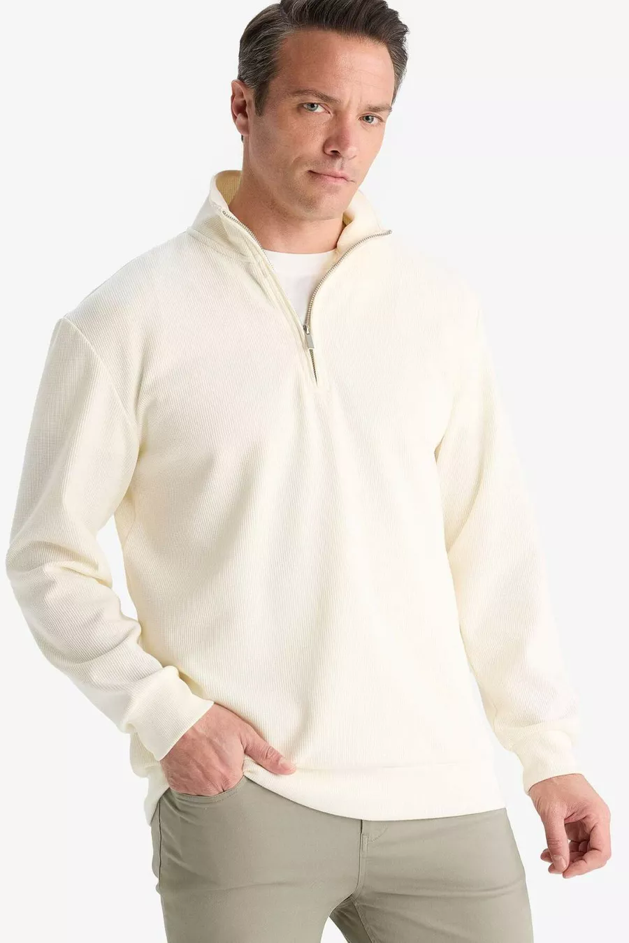 Comfort Fit Hoge Kraag Gestructureerd Halve Ritssluiting Waffle Sweater SP