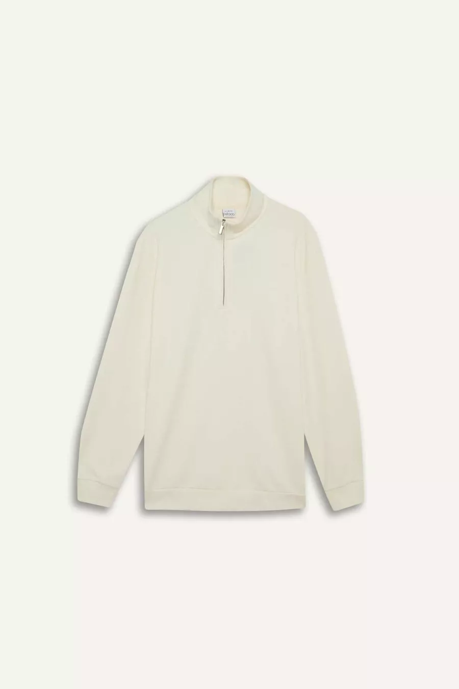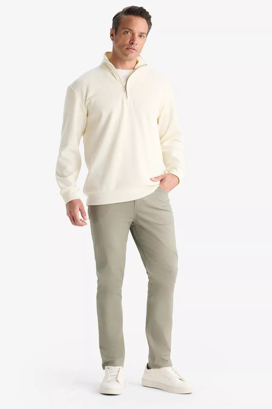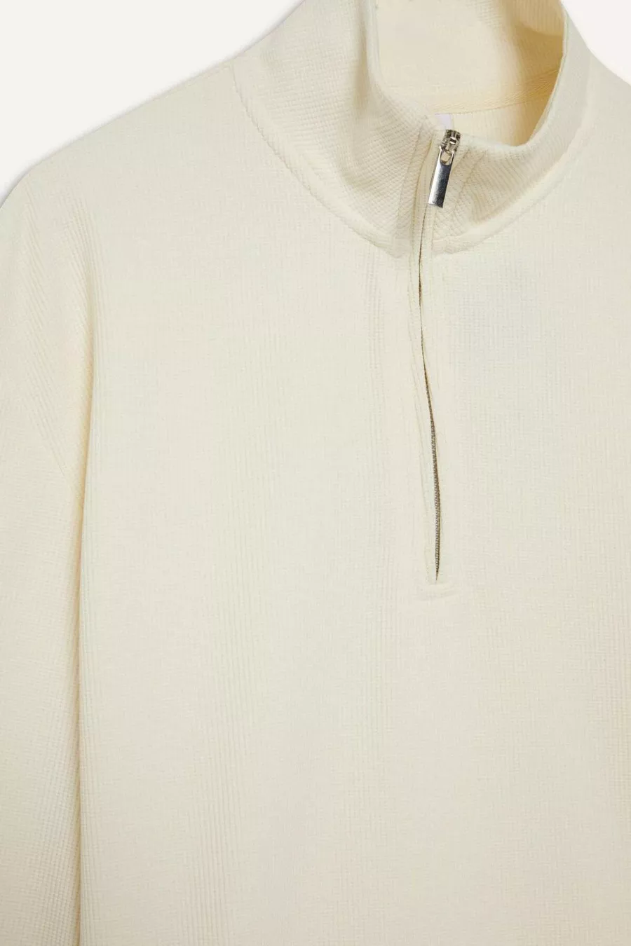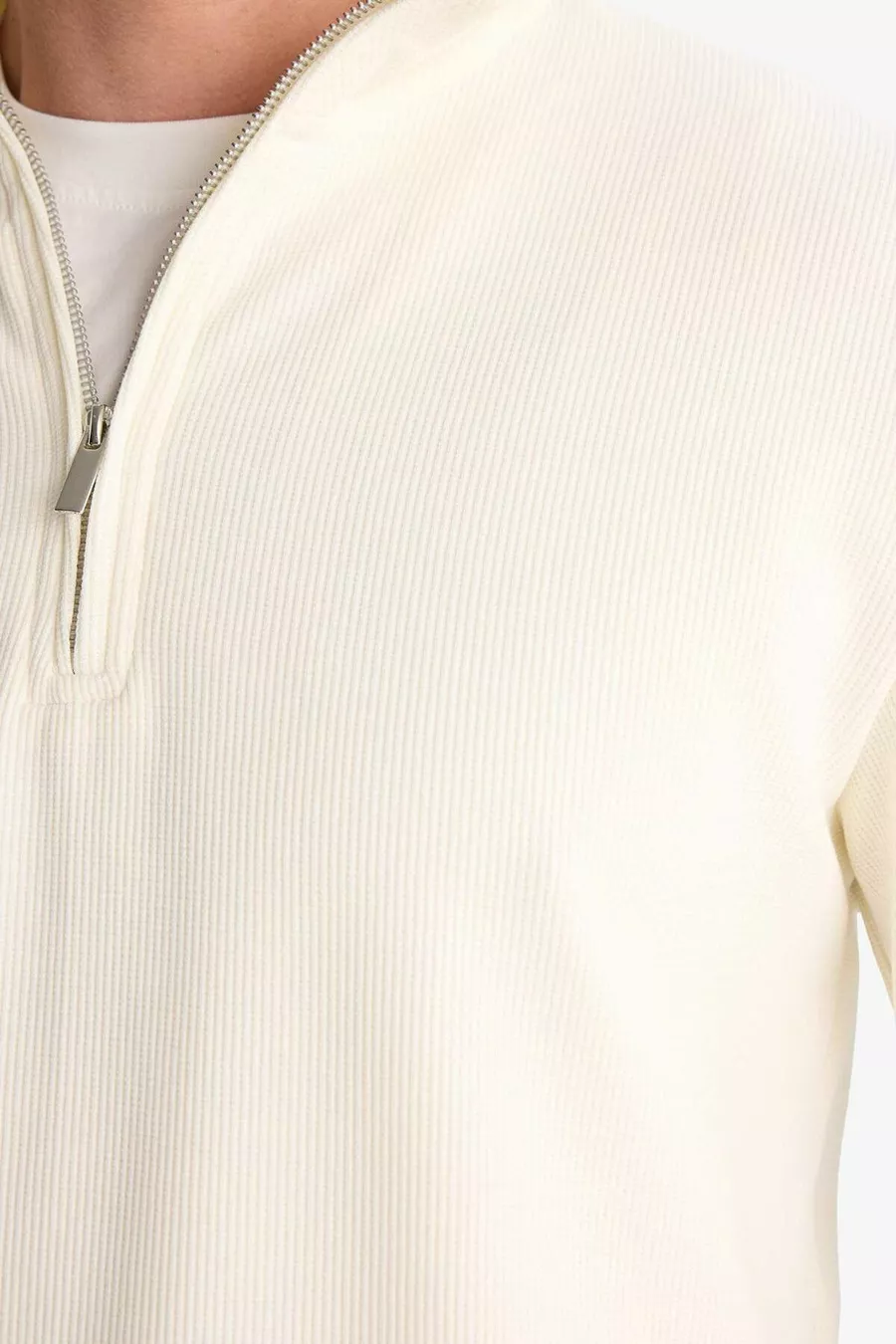 Comfort Fit Hoge Kraag Gestructureerd Halve Ritssluiting Waffle Sweater SP