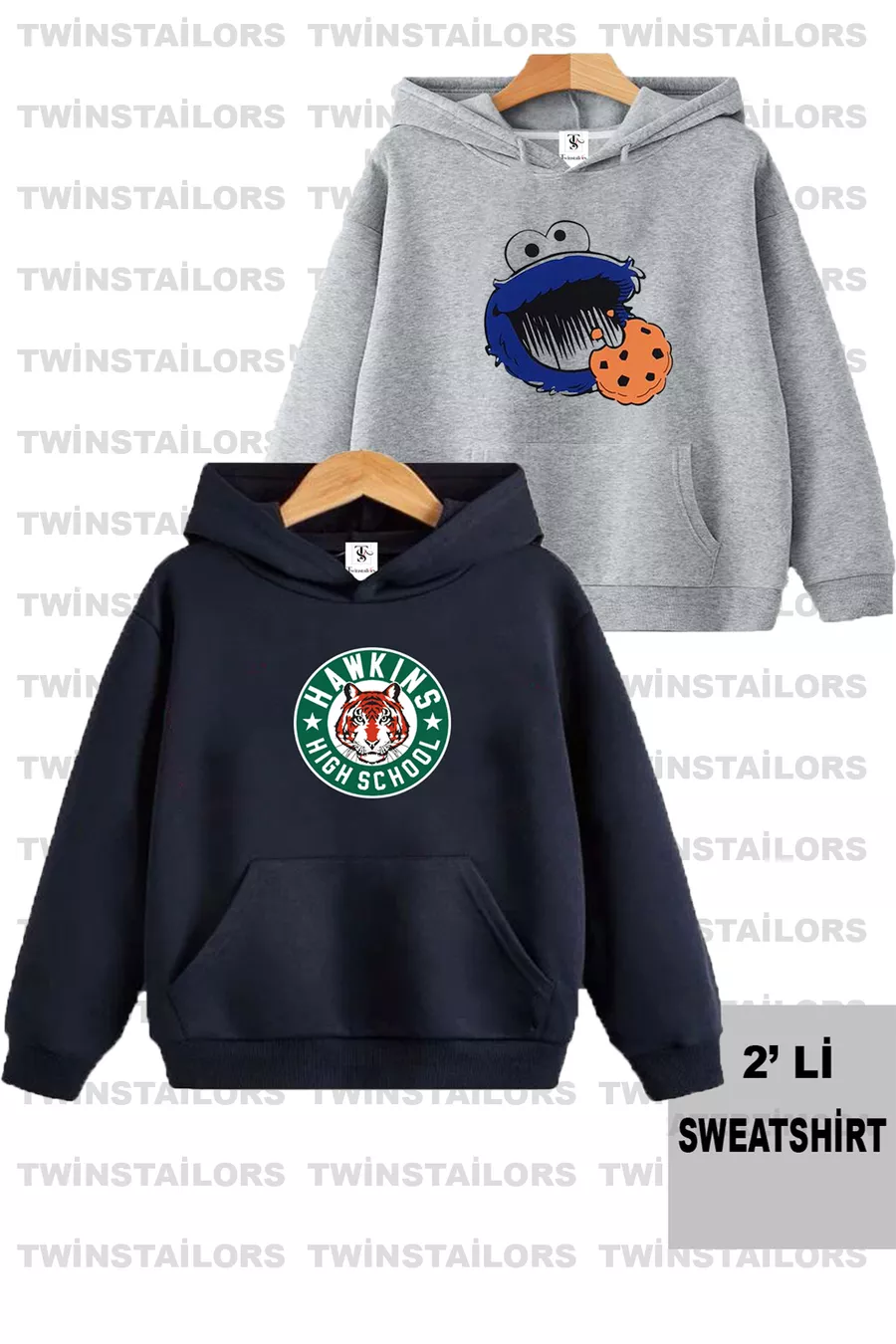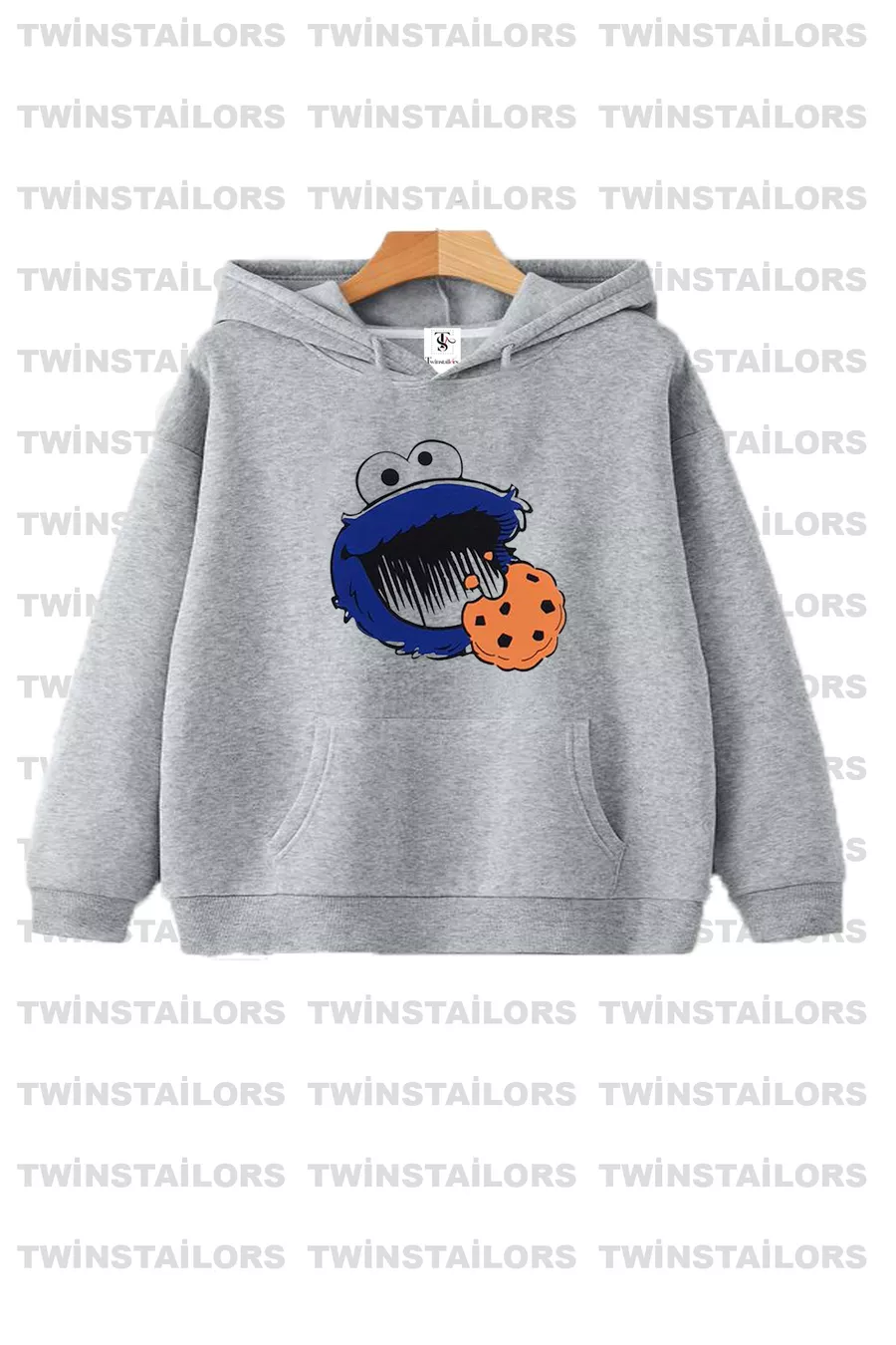 Cookie Monster Bedrukt Unisex Set van Twee Donkerblauw-Grijze Kinderhoodie