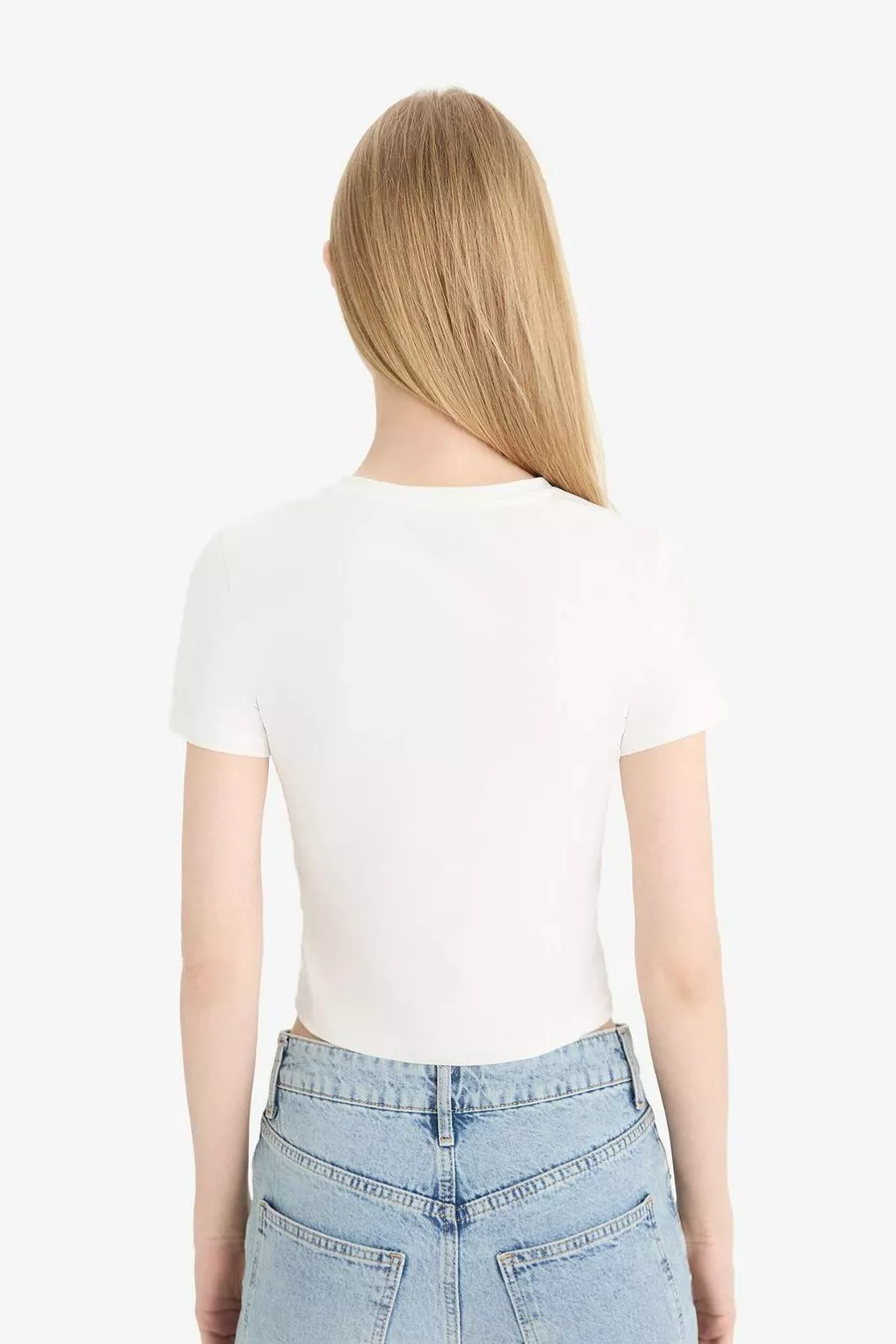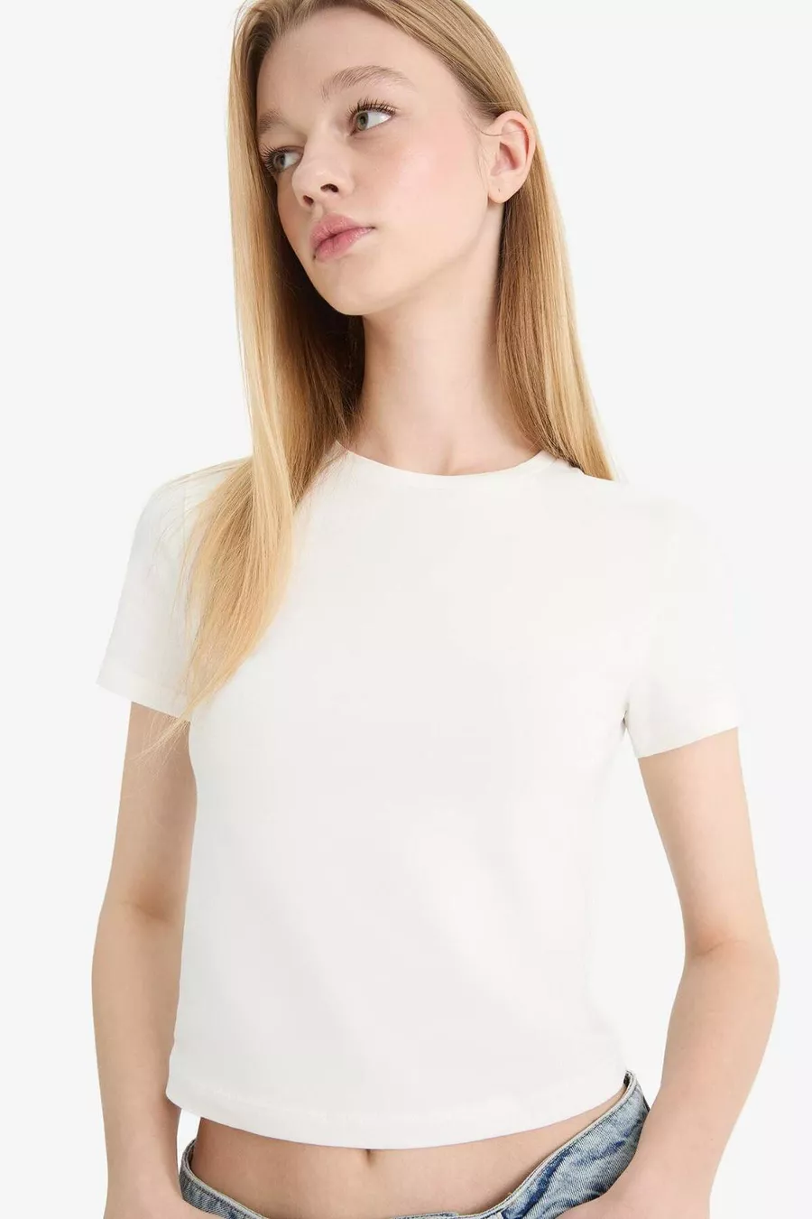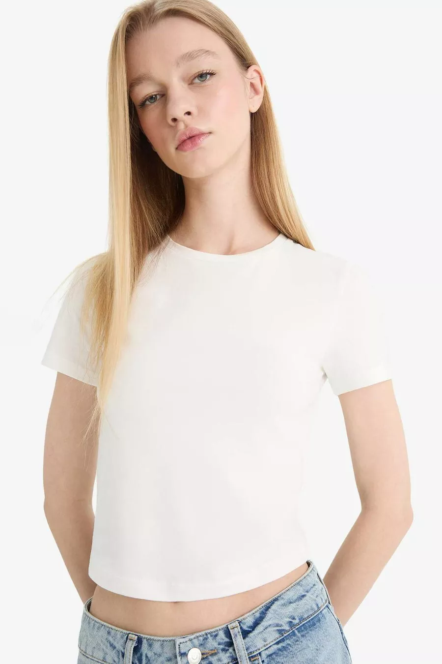 Patroon: Effen Pasvorm: Getailleerd Kraagtype: Ronde hals Materiaal: Katoen - Elastaan Stoftype: Gebreid Mouwtype: Korte mouwen Kleur: Ecru Verpakkingsinhoud: 1+ Techniek: Geen Zak: Zonder zakken Productdetails: Niet beschikbaar Mouwlengte: Kort Collectie: Basic Lengte: Standaard Omgeving: Casual/Dagelijks Extra kenmerk: Rechte snit Druk/ Borduurtechniek: Zonder print Duurzaamheidsdetail: Nee Weefseltype: Rib Silhouet: Basic Persona: Cool & Comfort Materiaalcomponent: 95% Katoen, 5% Elastaan Wasinstructies: T44 Seizoen: Zomer Herkomst: TR Doosstatus: Geen doos