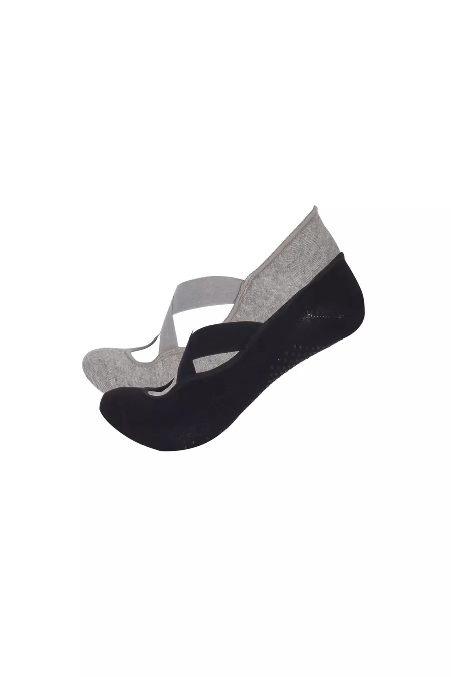 Dames 2-pack Asta Yoga/Pilates Sokken Grijs / Zwart