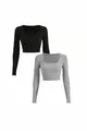 Dames 2-stuks Vierkante Hals Geribbelde Rib Crop Lange Mouwen Blouse