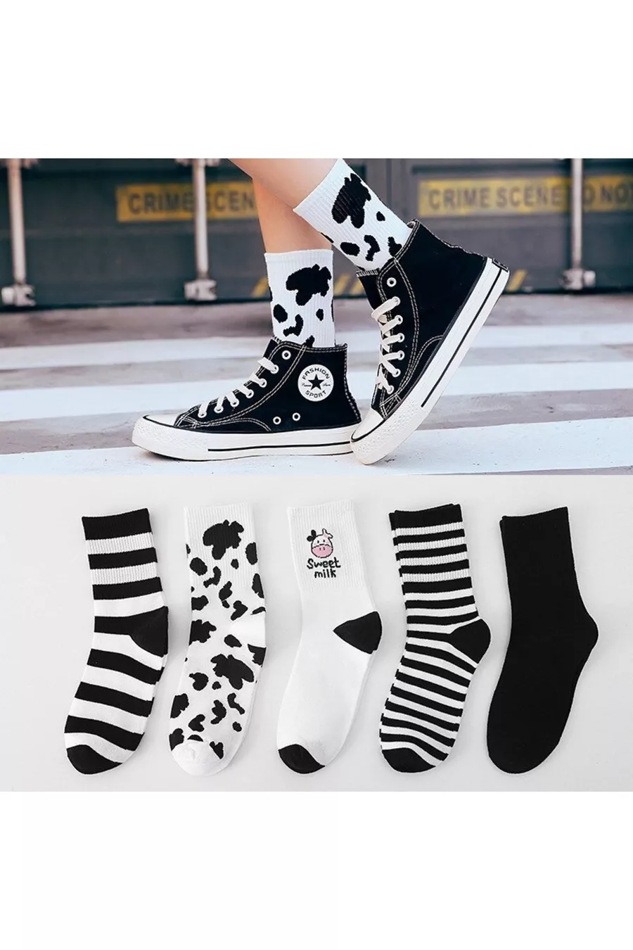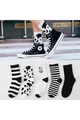 Dames 5 paar zwarte witte koeienprint gestreepte tennis sokken
