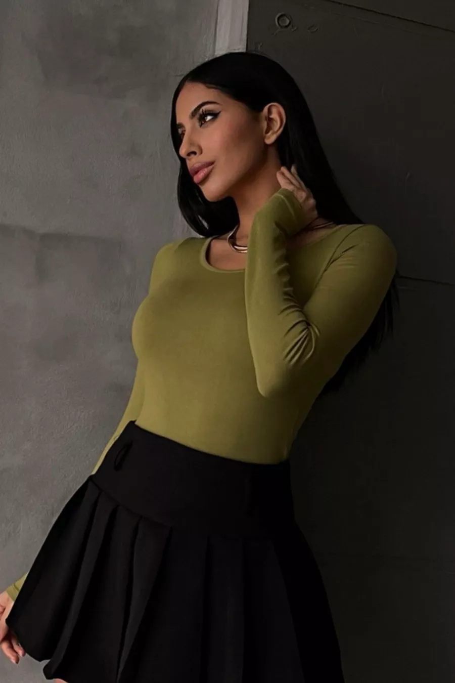 Dames Blouse met Prinsessenhals in Olijfgroen