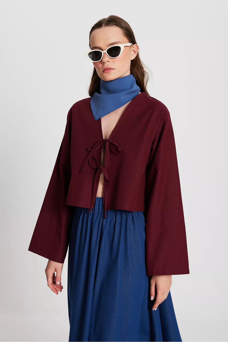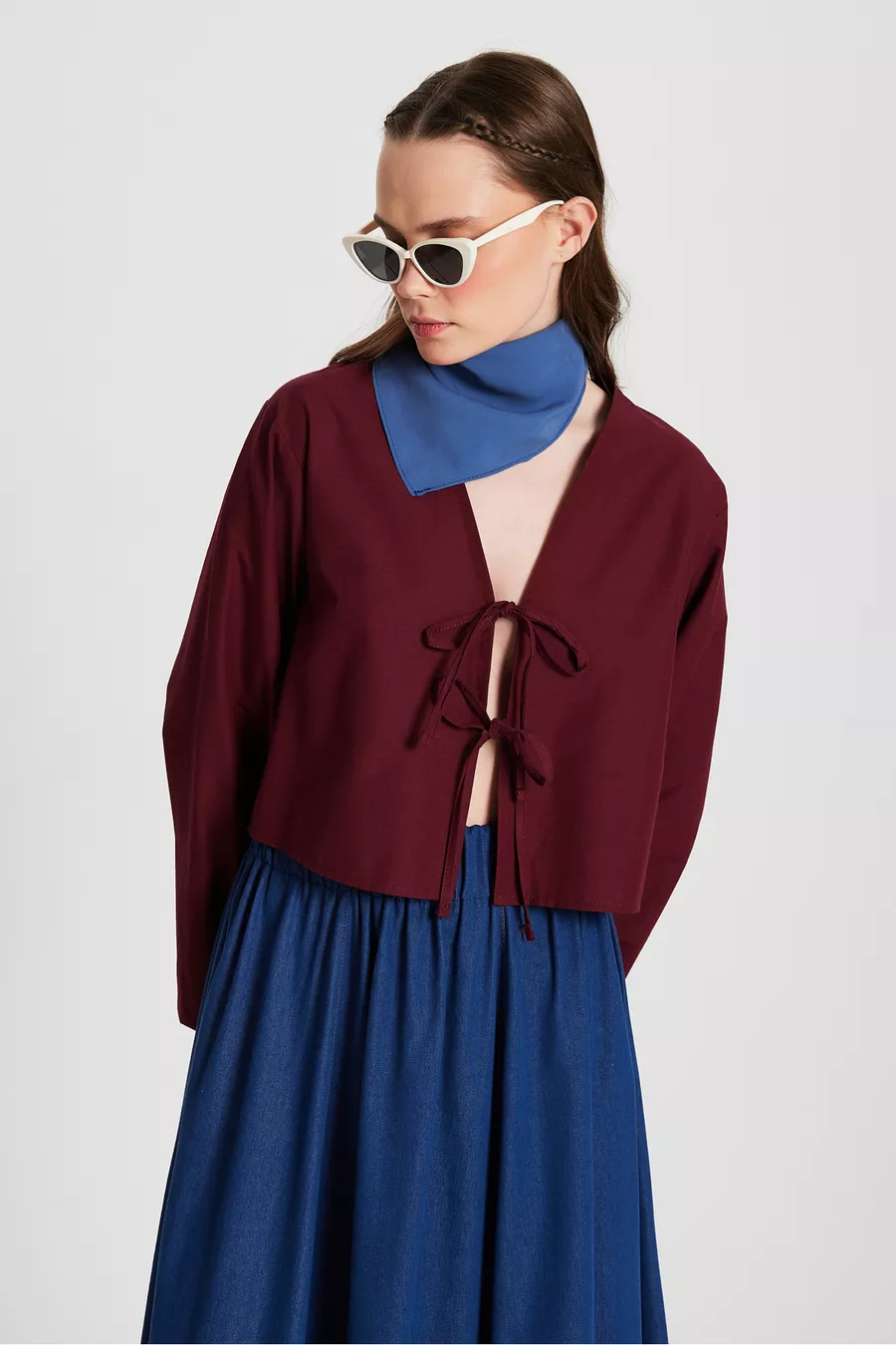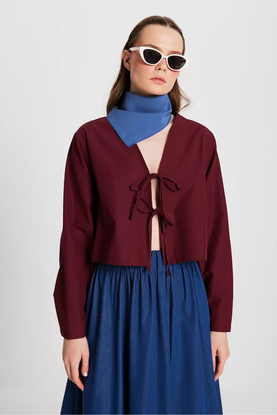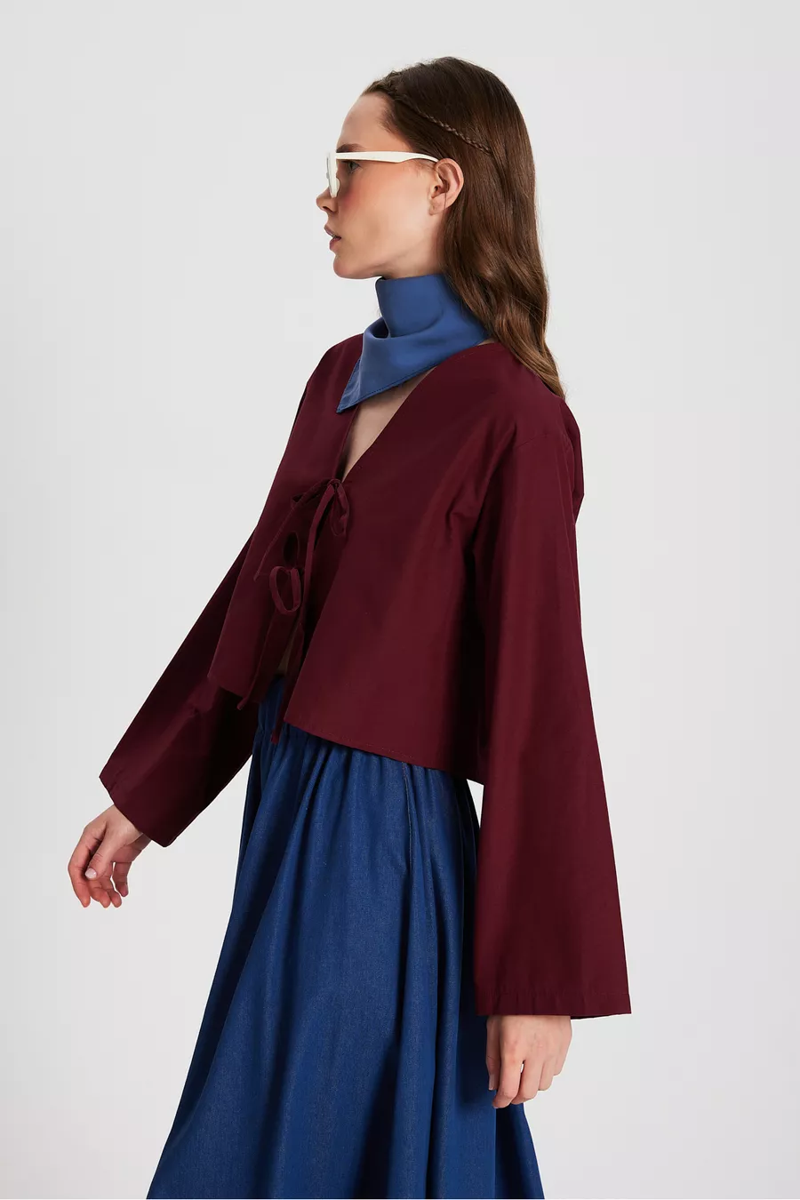Dames Bordeaux Poplin Blouse met Voorstrik