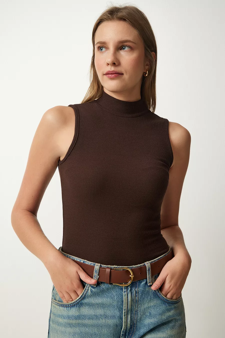 Patroon: Effen Pasvorm: Slim Fit Kraagtype: Coltrui Stoftype: Gebreid Materiaal: Katoen Mouwtype: Mouwloos Kleur: Beige Zak: Zonder zak Producttype: Effen Dikte: Gemiddeld Voering: Zonder voering Lengte: Regular Collectie: Basic Mouwlengte: Mouwloos Omgeving: Casual/Dagelijks Silhouet: Basic Wevingssoort: Geribd Extra Eigenschap: Geen extra eigenschappen Persona: Cool & Comfort Riem/Gordel: Zonder riem Print/Borduur techniek: Zonder print Sluiting: Zonder sluiting Duurzaamheidsdetail: Nee Materiaalsamenstelling: 95% Katoen, 5% Lycra Wasinstructie: type 1 Verpakkingsinhoud: Set van 2 Pet: Zonder pet Doosstatus: Geen doos