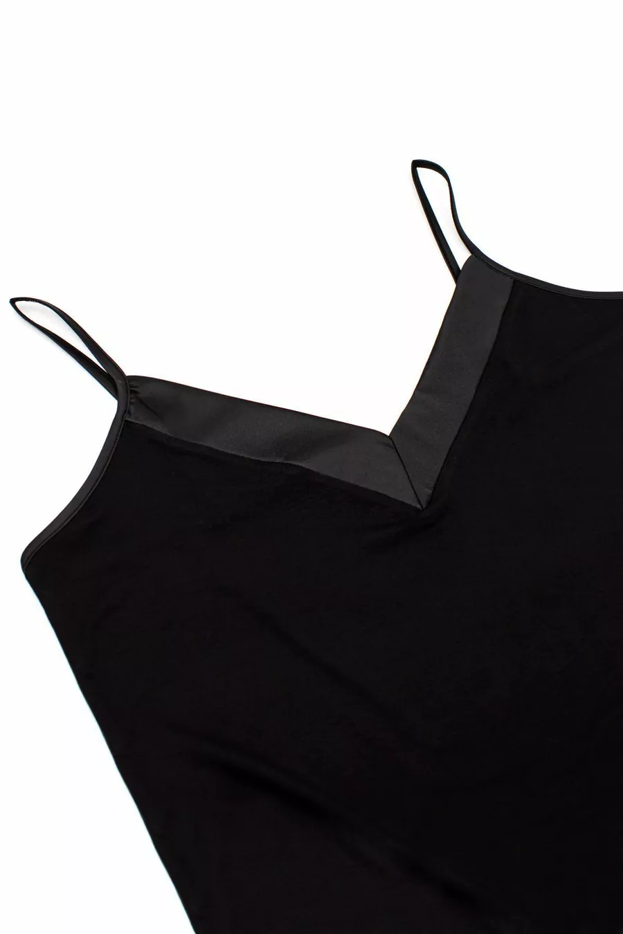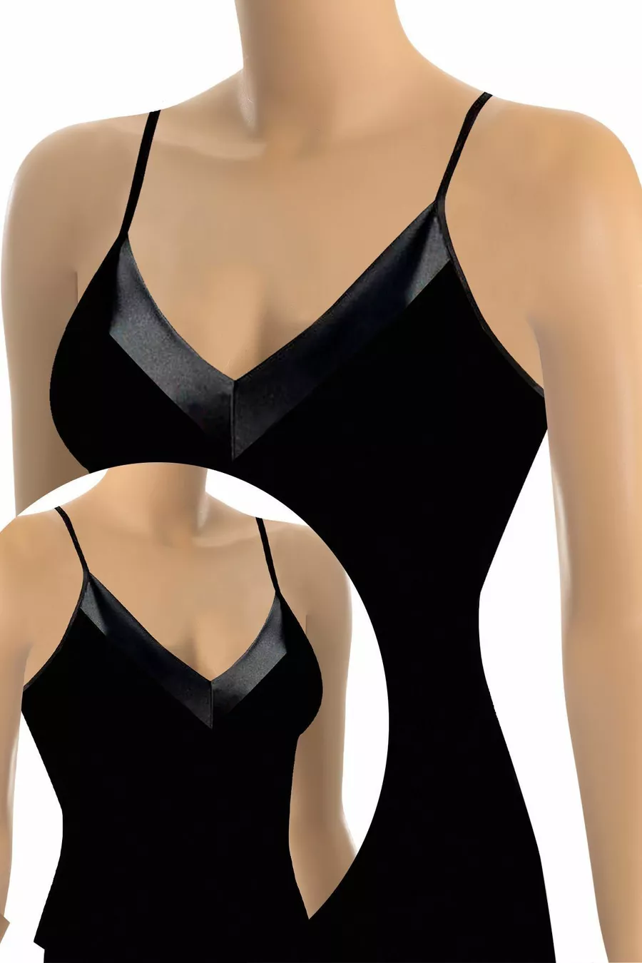 Mouwtype: Spaghettibandjes Kraagtype: V-hals Materiaal: Viscose Kleur: Zwart Inhoud van de verpakking: Enkel Patroon: Effen Producttype: Effen Pasvorm: Regular Mouwlengte: Spaghettibandjes Collectie: Ondergoed Stofsoort: Gebreid Extra eigenschap: Satijn Weeftechniek: Viscose Suprem Silhouet: Basic Drukborduurtechniek: Zonder druk Omgeving: Lounge/Thuis Duurzaamheidsdetail: Nee Lengte: Regular Materiaalcomponenten: 10% Elastaan, 90% Viscose Wasvoorschrift: type1 Land van herkomst: TR