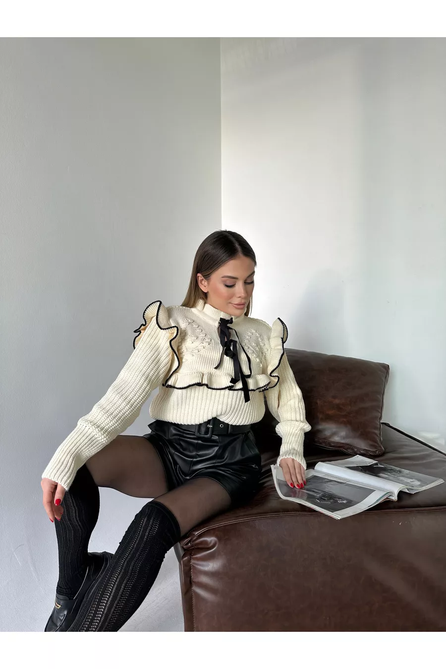 Patroon: Effen Model: Regular Kraagtype: Opstaande kraag Stofsoort: Tricot Materiaal: Acryl - Katoen Kleur: Ecru Mouwtype: Lange mouw Zak: Zonder zakken Productdetails: Kwastje Producttype: Effen Mouwlengte: Lang Dikte: Midden Collectie: Basic Silhouet: Regular Omgeving: Dagelijks Lengte: Standaard Extra functie: Wasbaar Druk/ Borduurtechniek: Zonder druk Persoon: Jong Weeftechniek: Gebreid Duurzaamheidsdetail: Nee Aantal stukken: 1 Riem/ Tailleband: Zonder riem Materiaalcomponent: 100% Acryl Wasvoorschrift: T100 Seizoen: Alle seizoenen Herkomst: TR Doosstatus: Geen doos