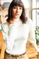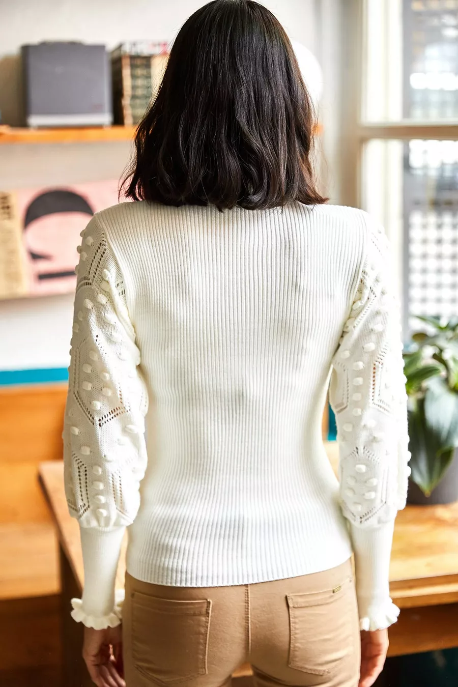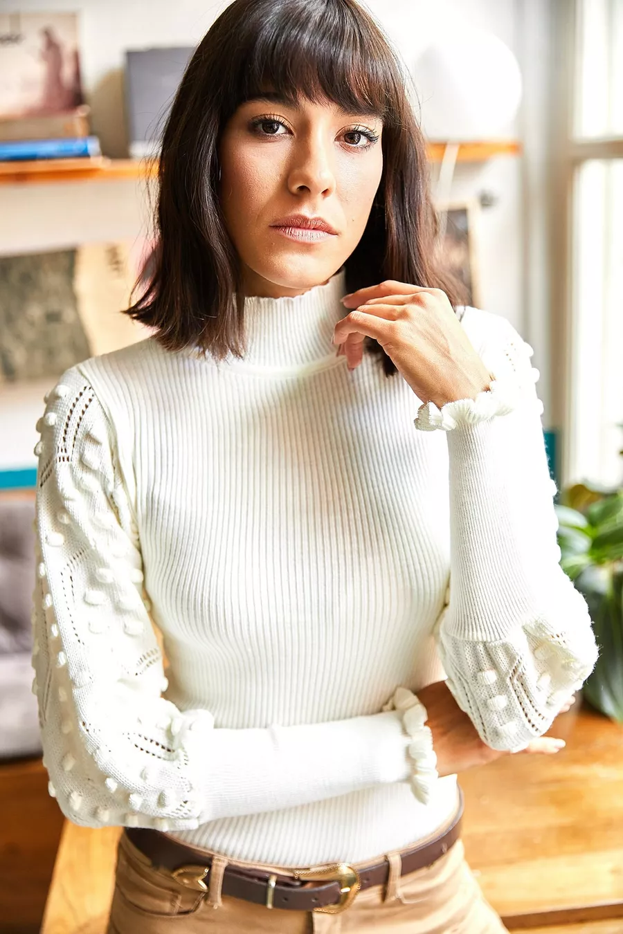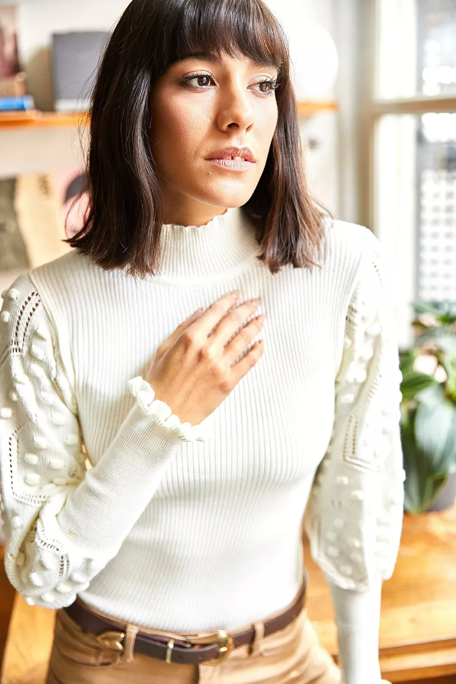 Dames Ecru Coltrui Gebreide Trui met Mouwdetails