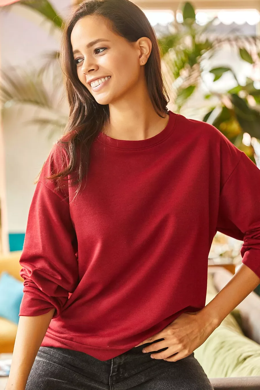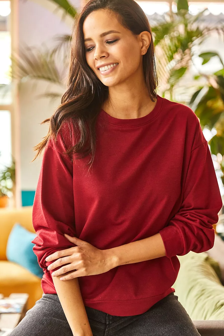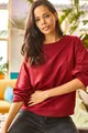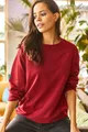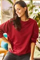 Dames Effen Bordeaux Basic Zacht Gevoerde Losvallende Sweatshirt
