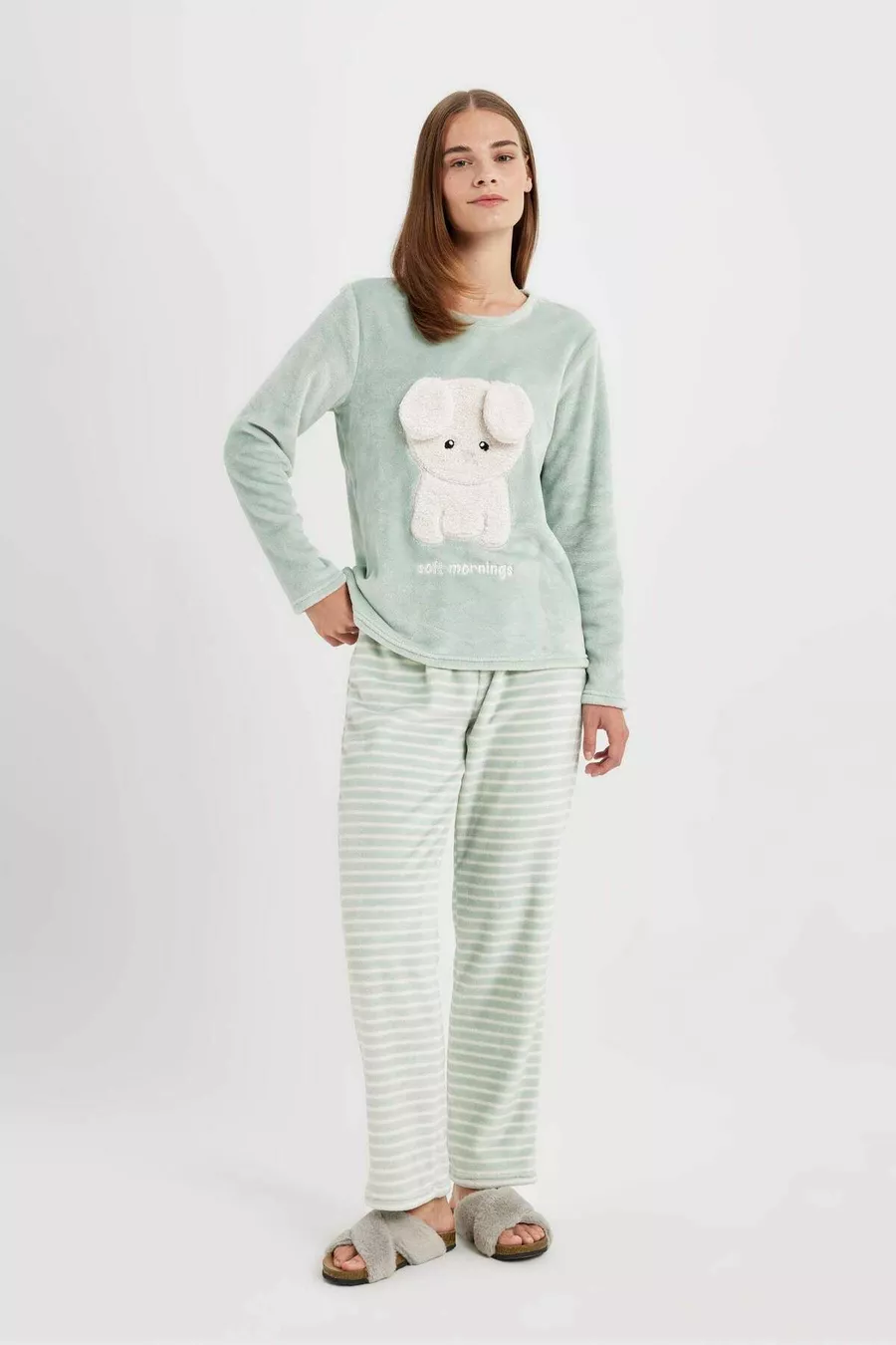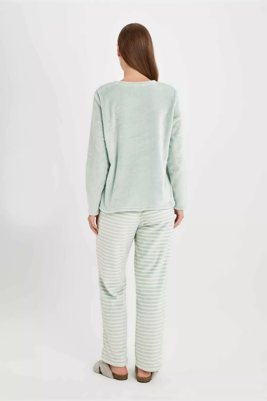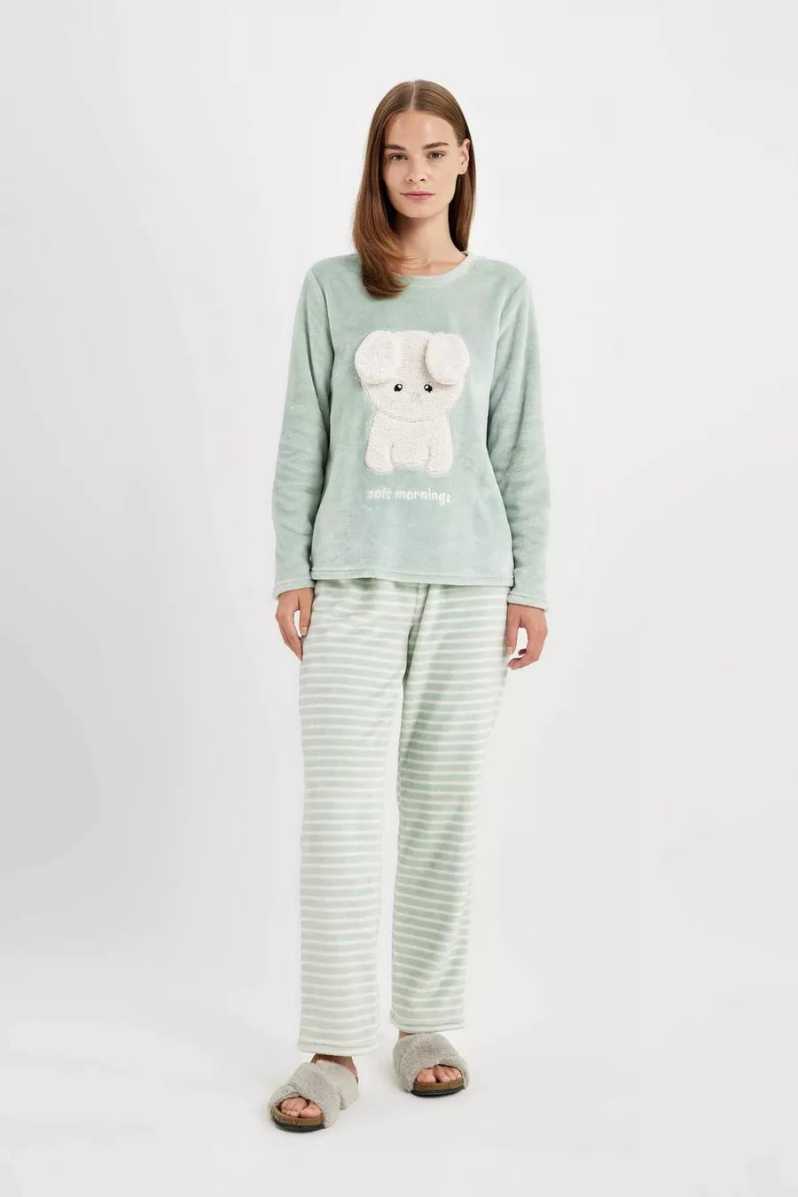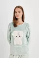 Dames Fall In Love bedrukte lange mouwen gestreept Welsoft pluche pyjama set au