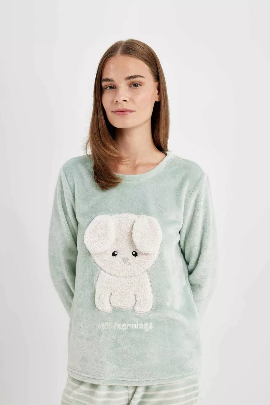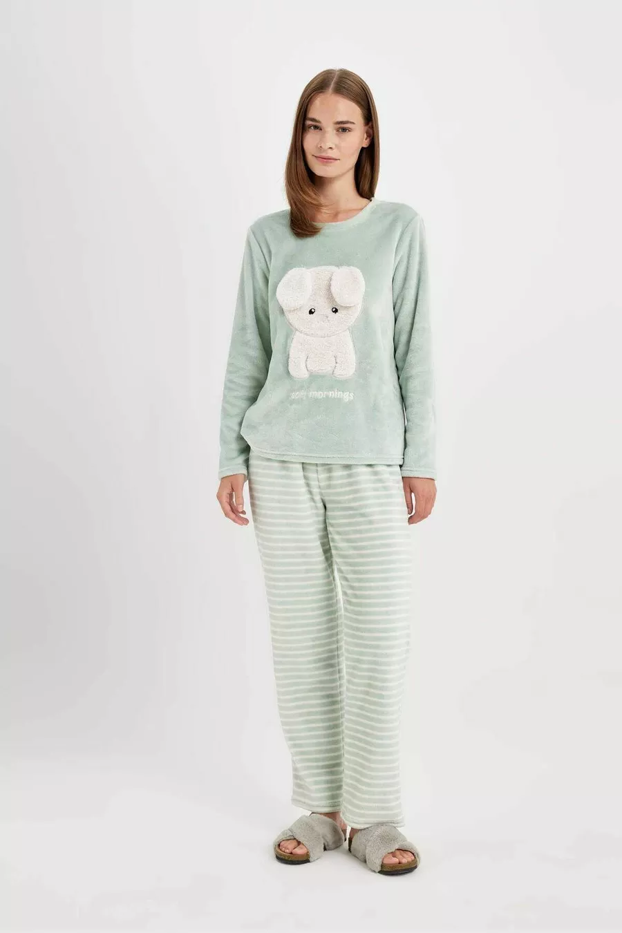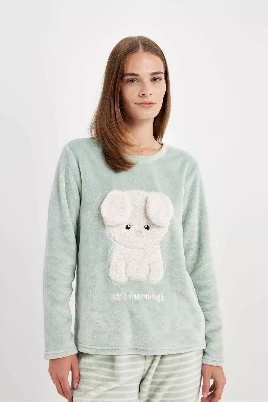 Dames Fall In Love bedrukte lange mouwen gestreept Welsoft pluche pyjama set au
