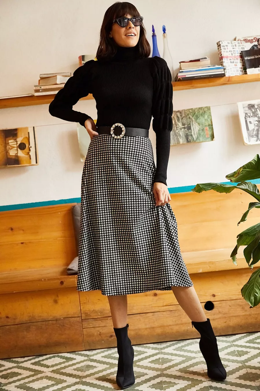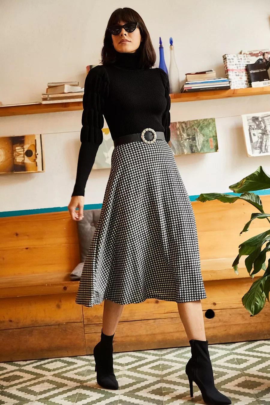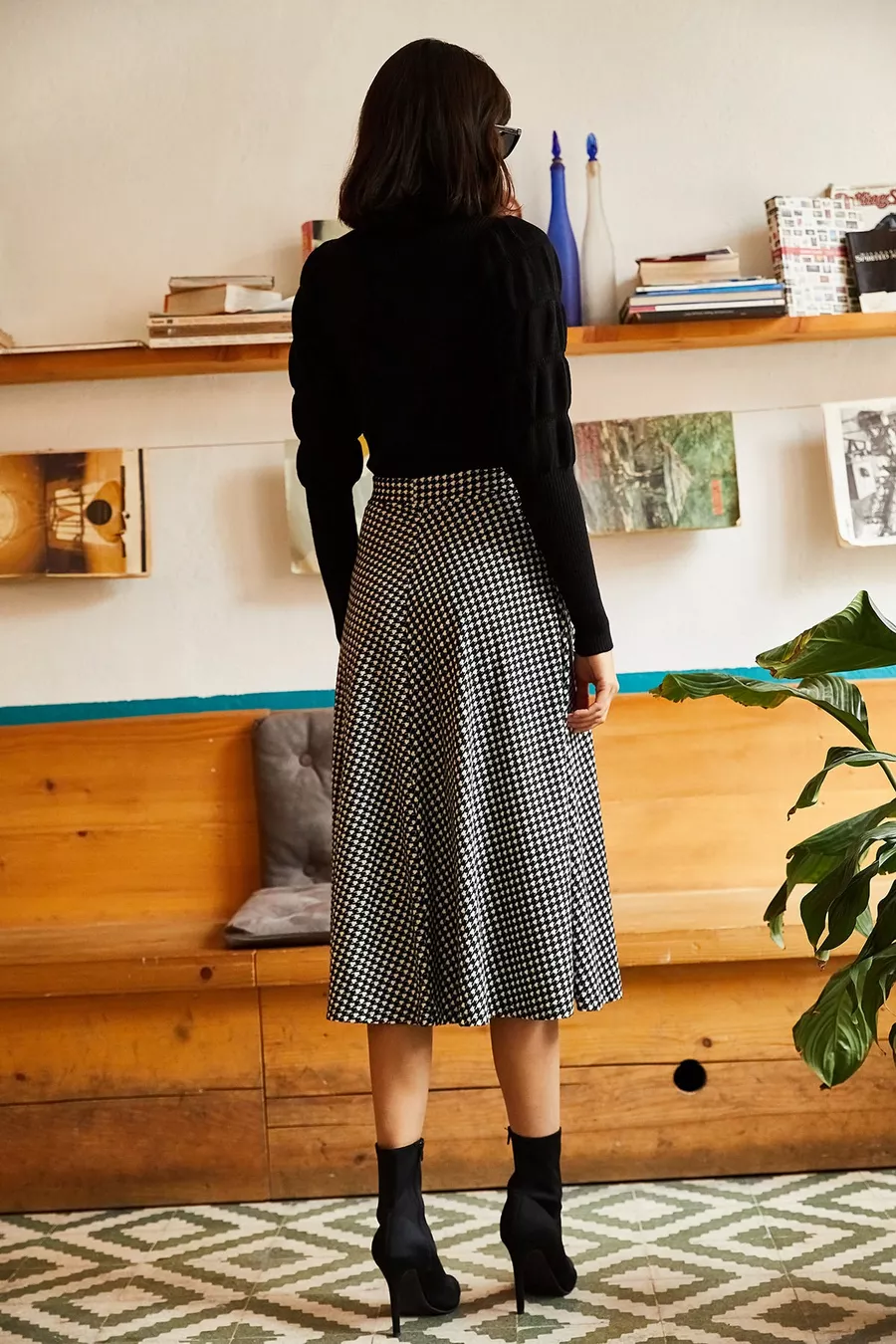 Dames Flared Rok van Zwart Suède met Elastische Taille