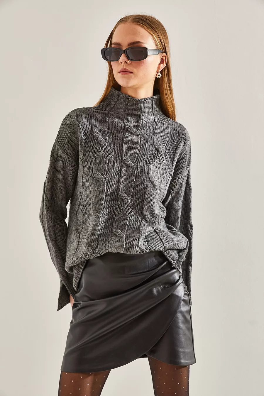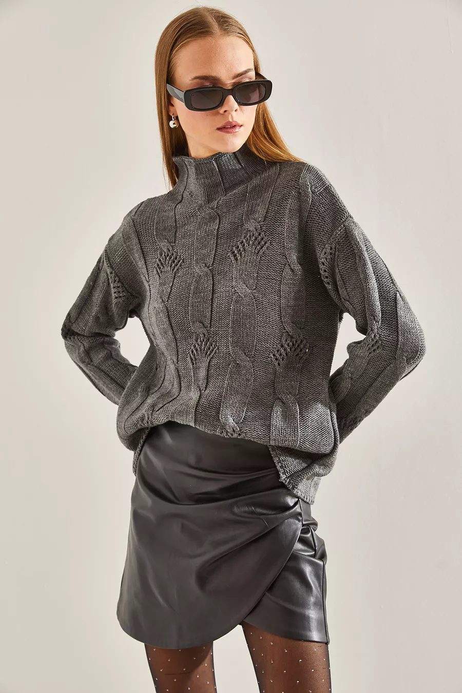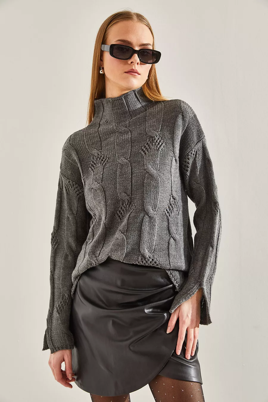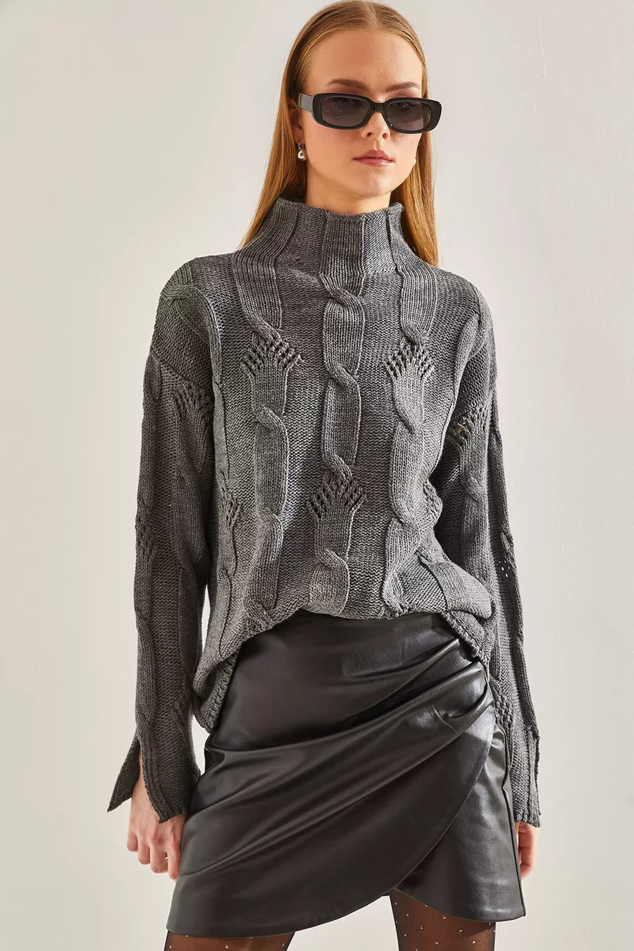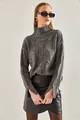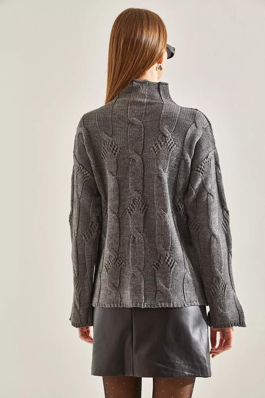 Dames Half Coltrui Gebreide Trui met Vlechtpatroon