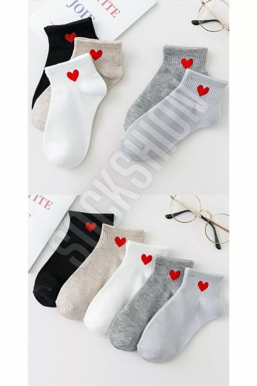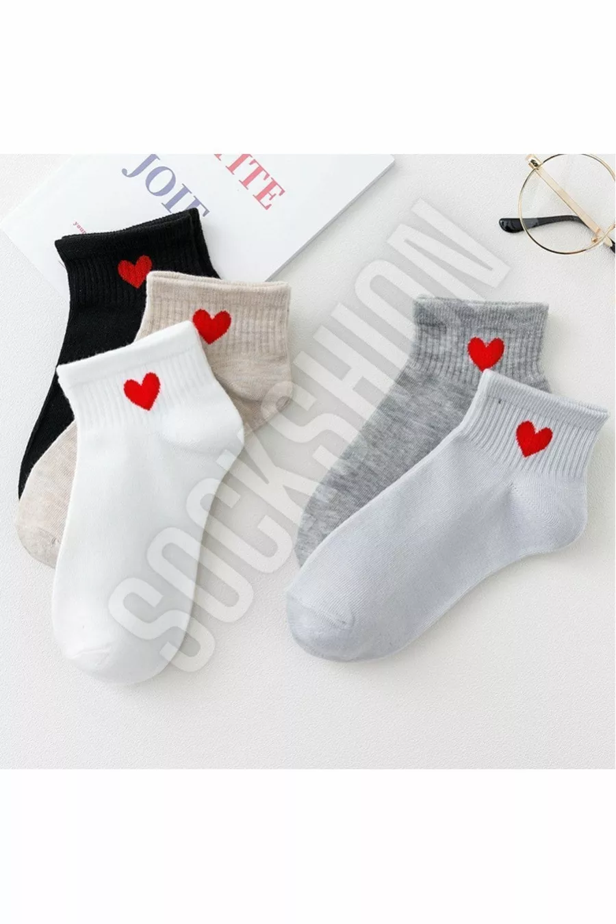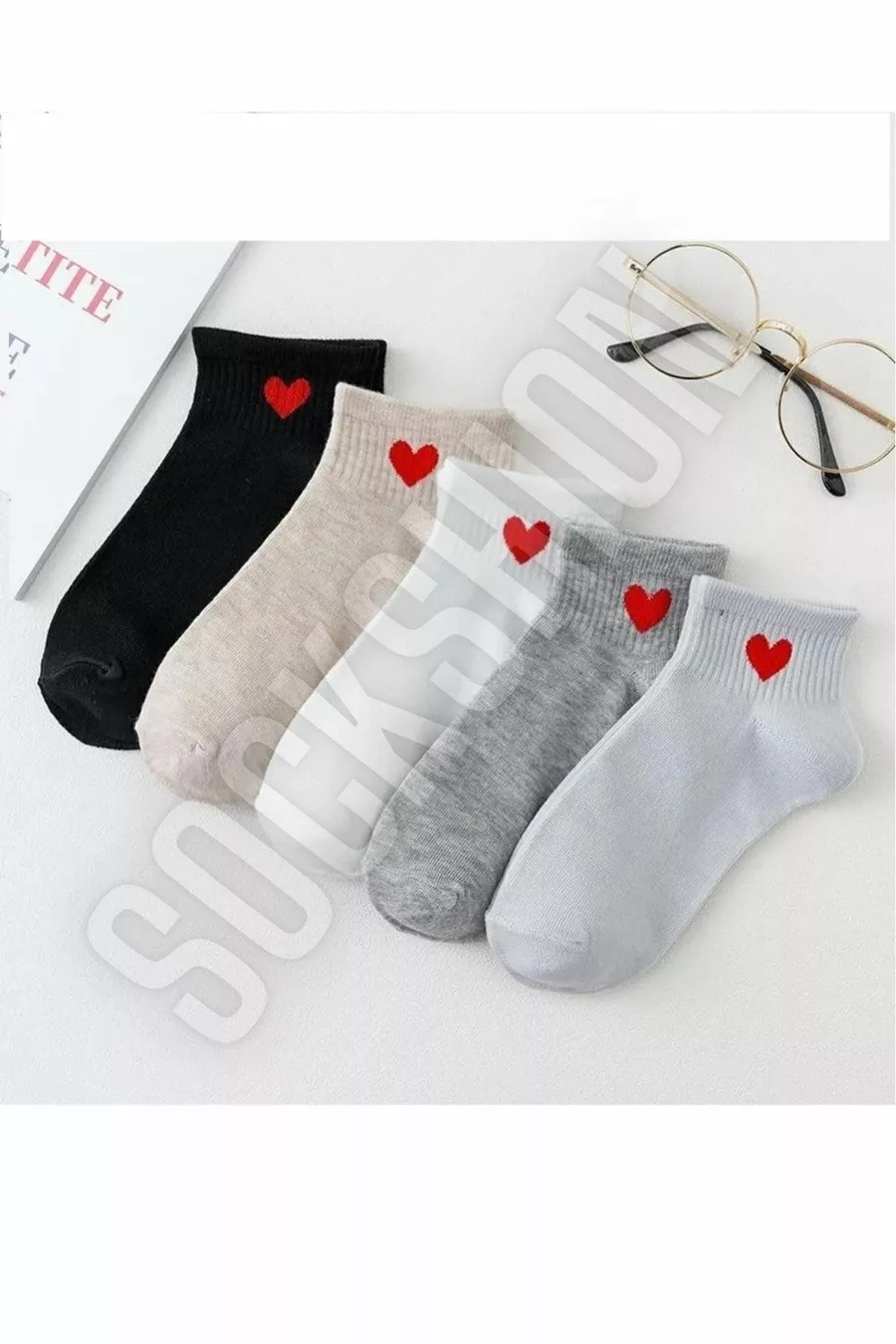 Dames Halve Kuit Sokken Set met Hartmotief - Een Liefdevolle Touch voor je Stijl