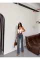 Taillehoog, uitlopend naar de enkel. Was voorzichtig bij maximaal 30 °C. Gebruik geen bleekmiddel. Niet in de trommeldroger drogen. Strijk op lage temperatuur. Kan chemisch gereinigd worden.