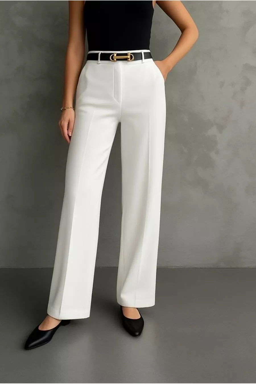 Dames hoge taille klassieke witte stoffen broek cm zonder riem