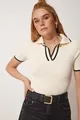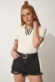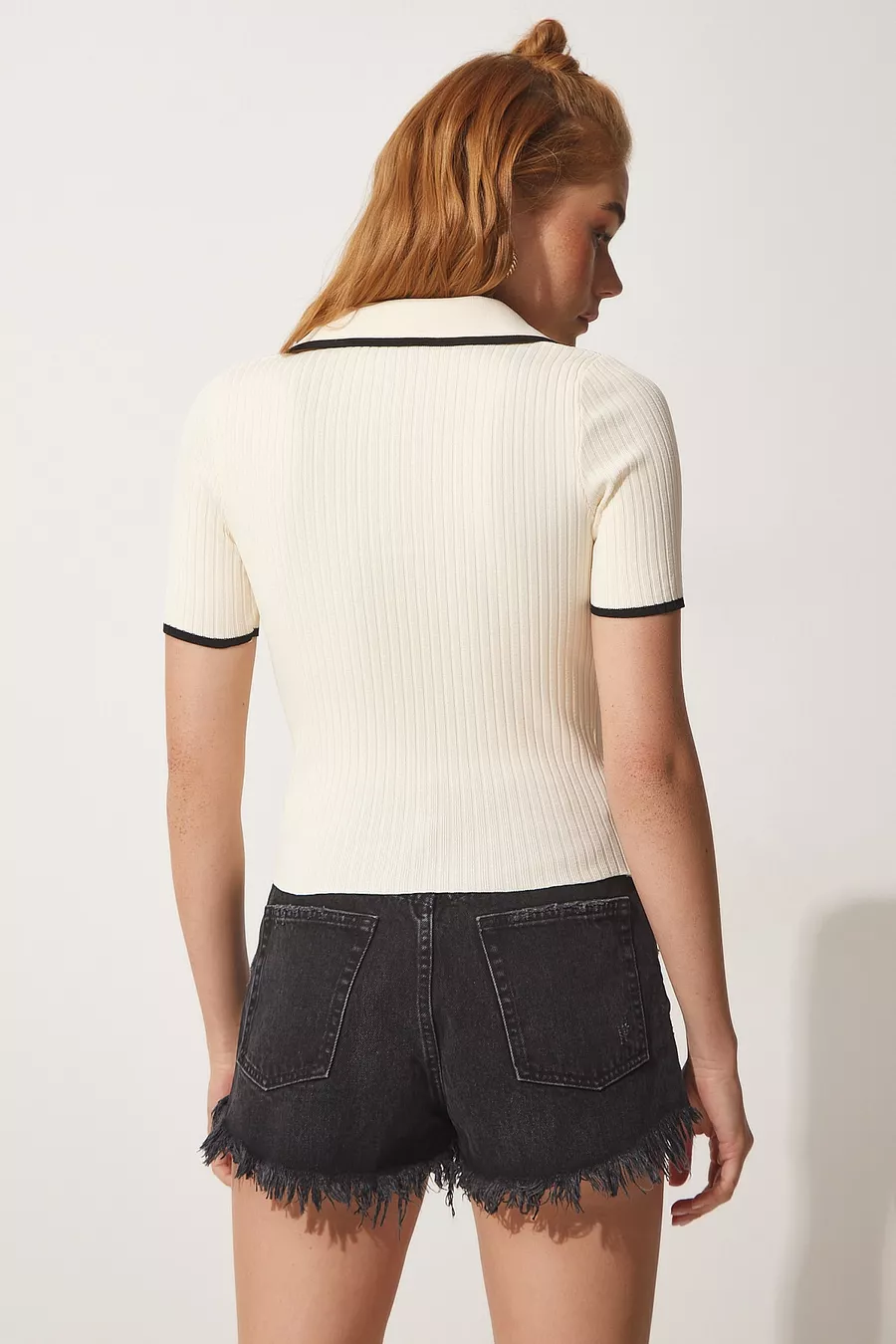 Dames Korte Mouw Polo Hals Geribbeld Zomerse Trui