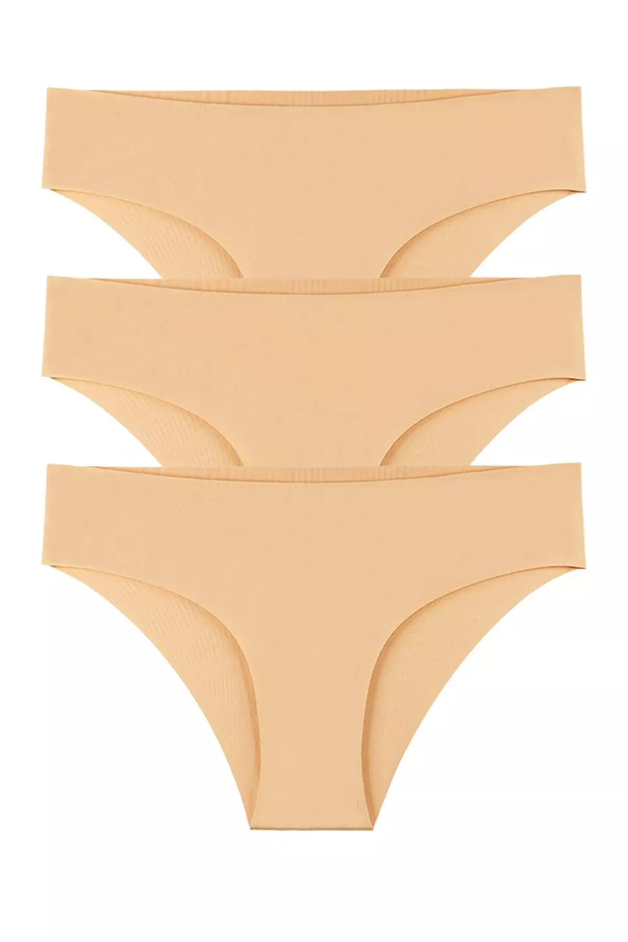 Dames Laser Gesneden Naadloze Lycra Slip 3-Pak Set Beige -